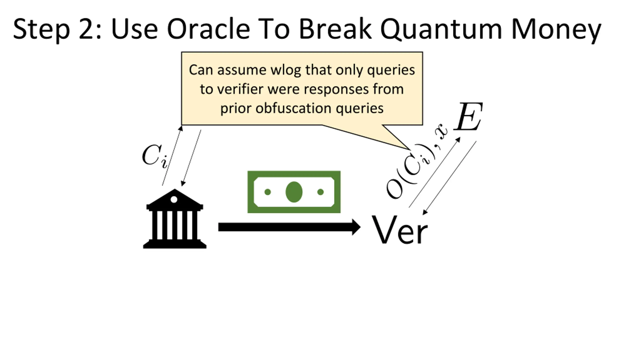 Step 2: Use Oracle To Break Quantum Money Can assume wlog that only queries to verifier were responses from prior obfuscation queries