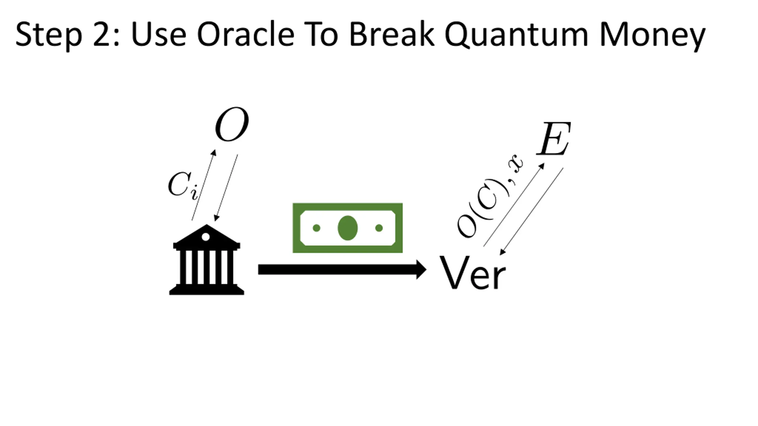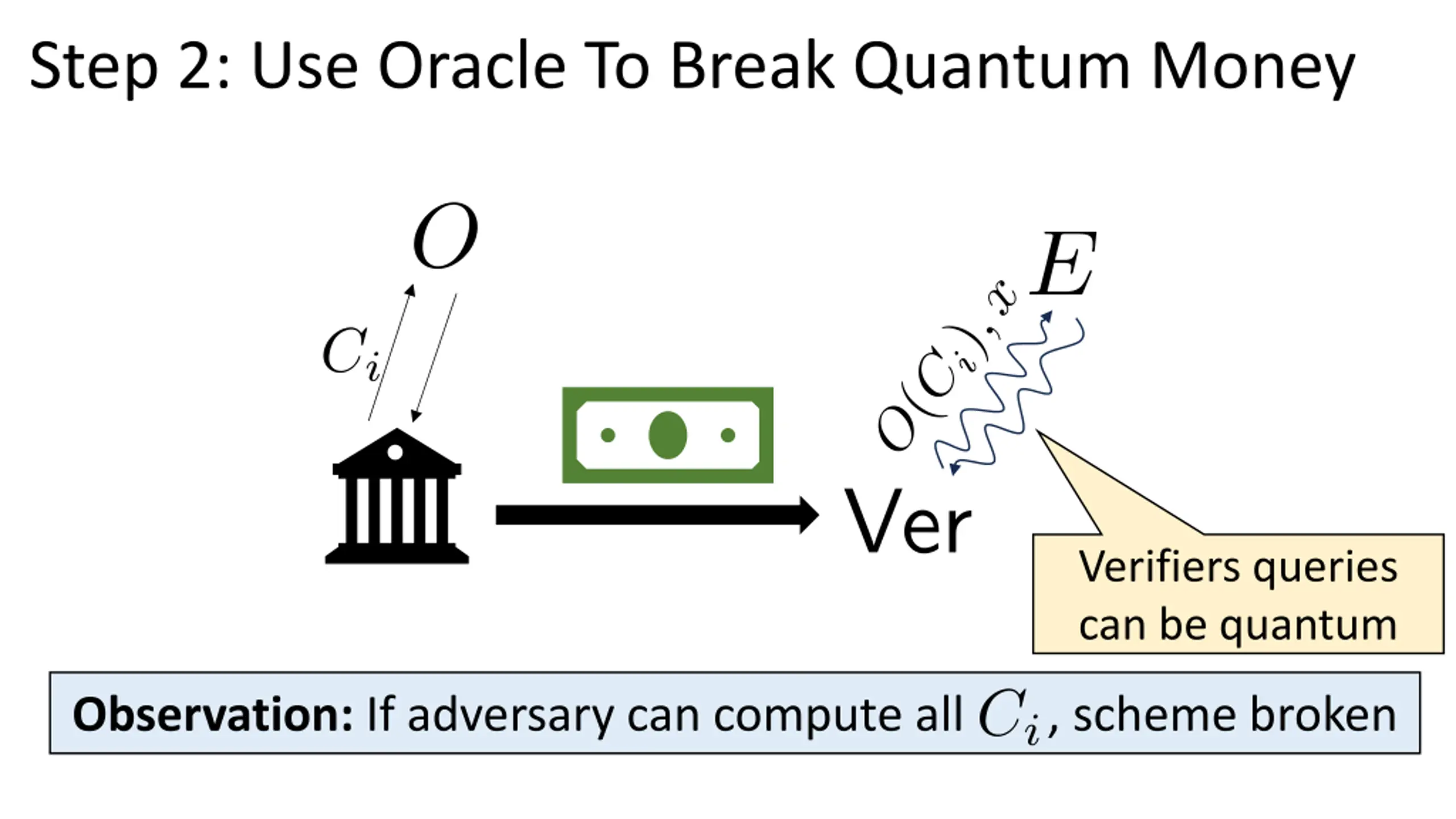 Step 2: Use Oracle To Break Quantum Money Verifiers queries can be quantum Observation: If adversary can compute all , scheme broken
