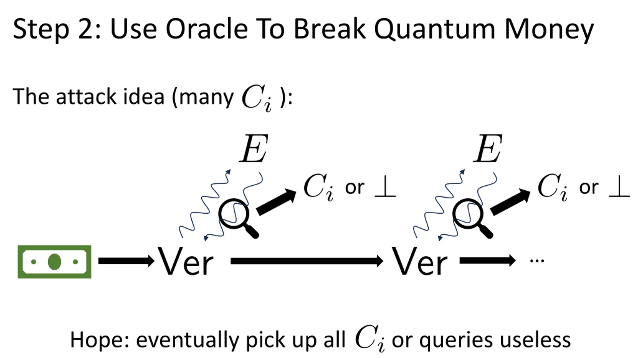 Step 2: Use Oracle To Break Quantum Money The attack idea (many ): or or Hope: eventually pick up all or queries useless