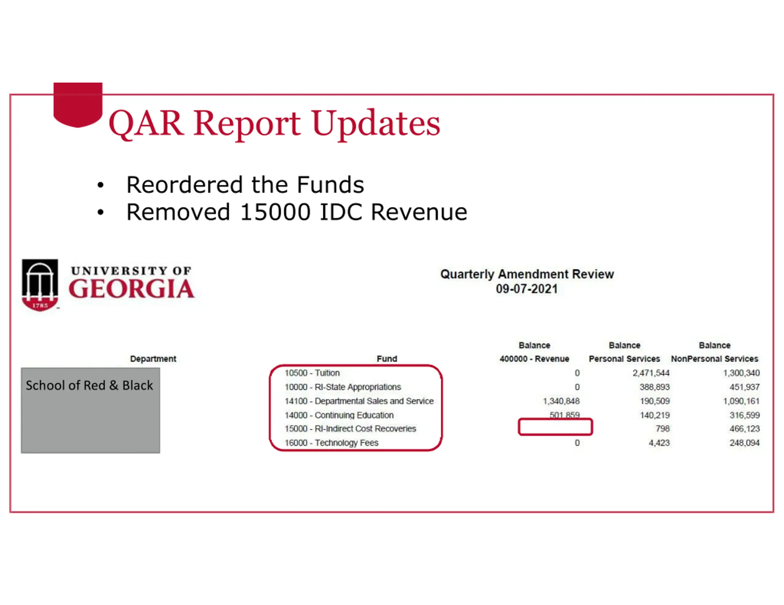 QAR Report Updates Reordered the Funds Removed 15000 IDC Revenue School of Red & Black