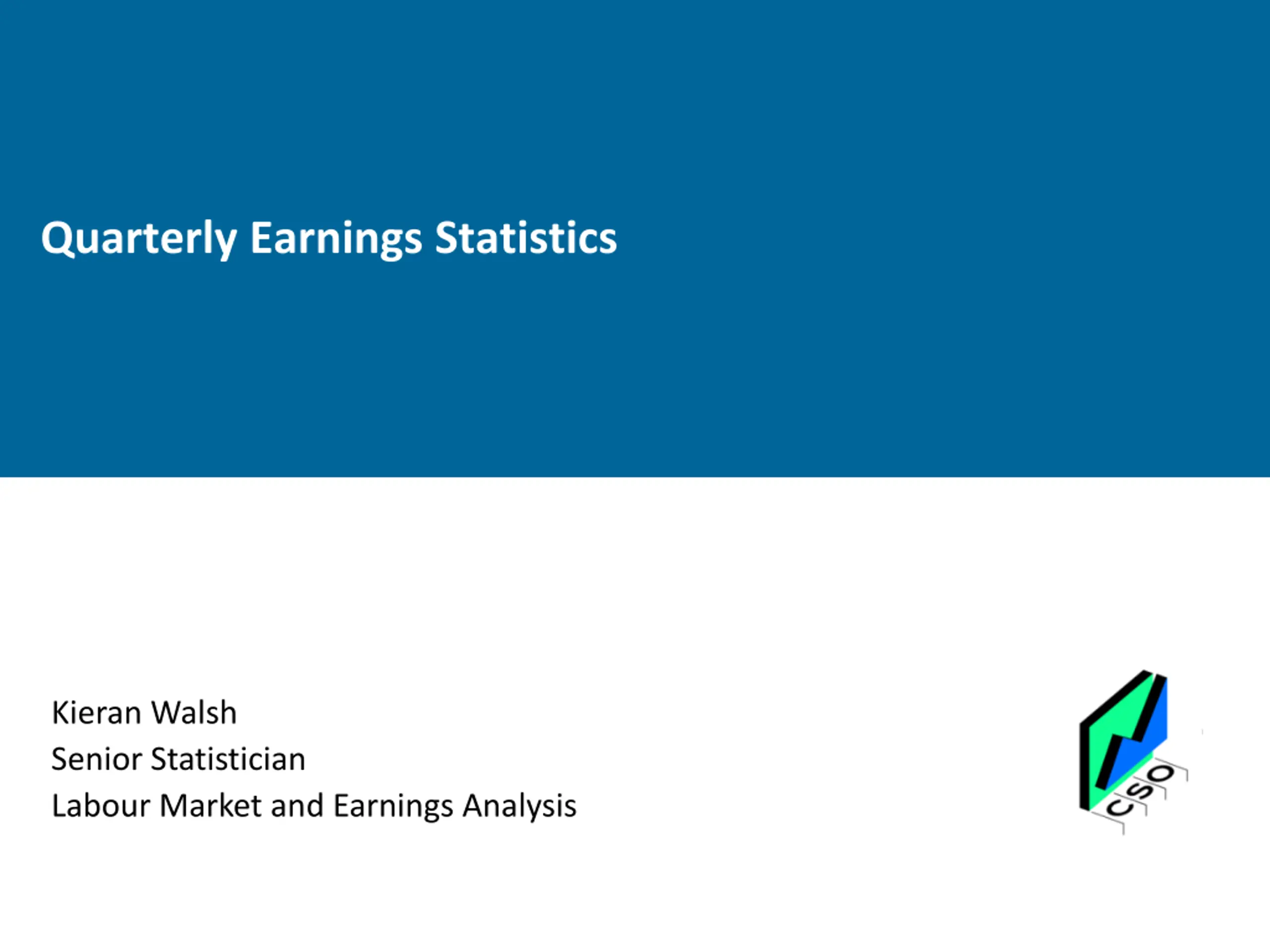 Quarterly Earnings Statistics Kieran Walsh Senior Statistician Labour Market and Earnings Analysis