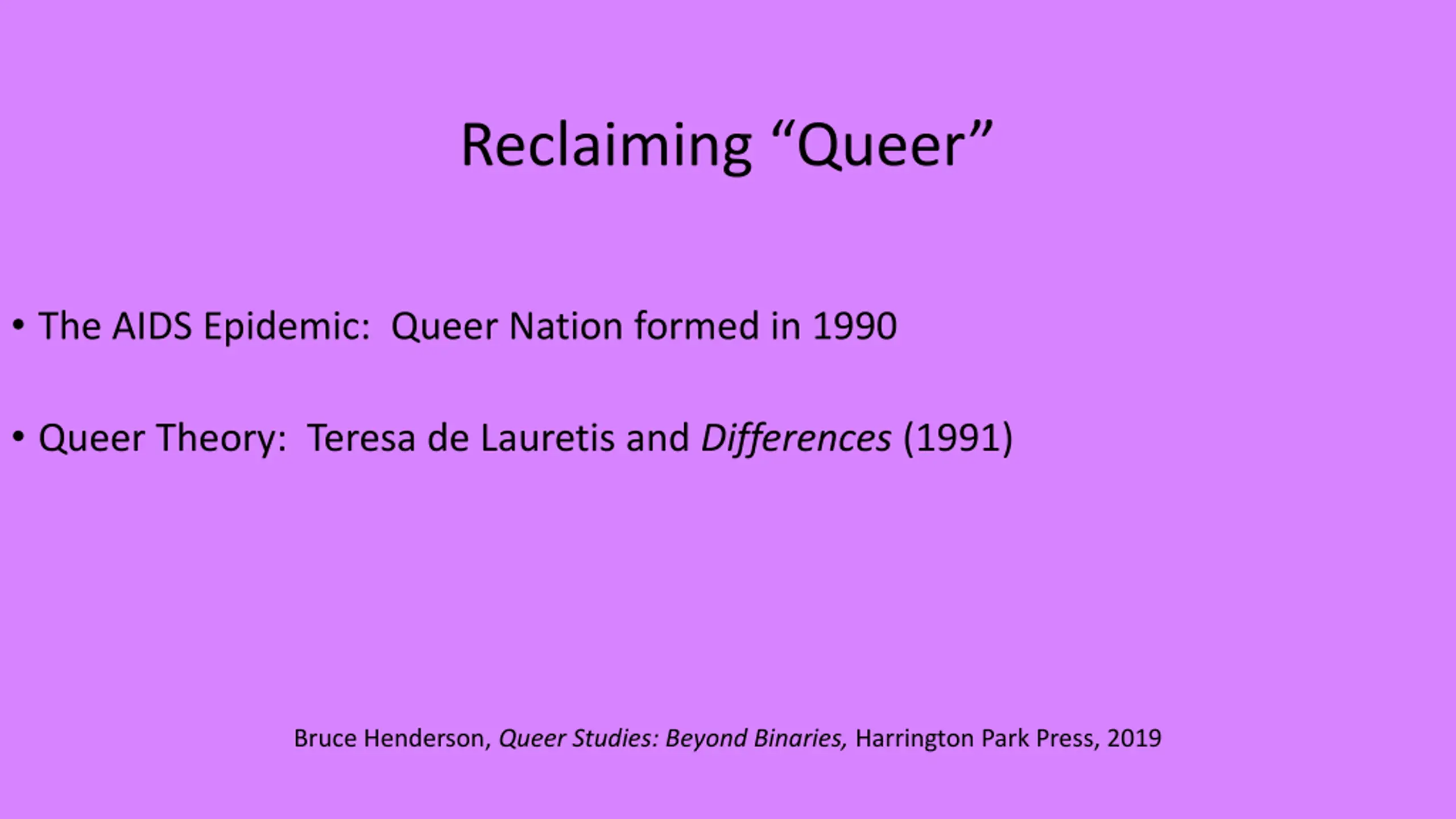 Reclaiming Queer The AIDS Epidemic: Queer Nation formed in 1990 Queer Theory: Teresa de Lauretis and Differences (1991) Bruce Henderson, Queer Studies: Beyond Binaries, Harrington Park Press, 2019