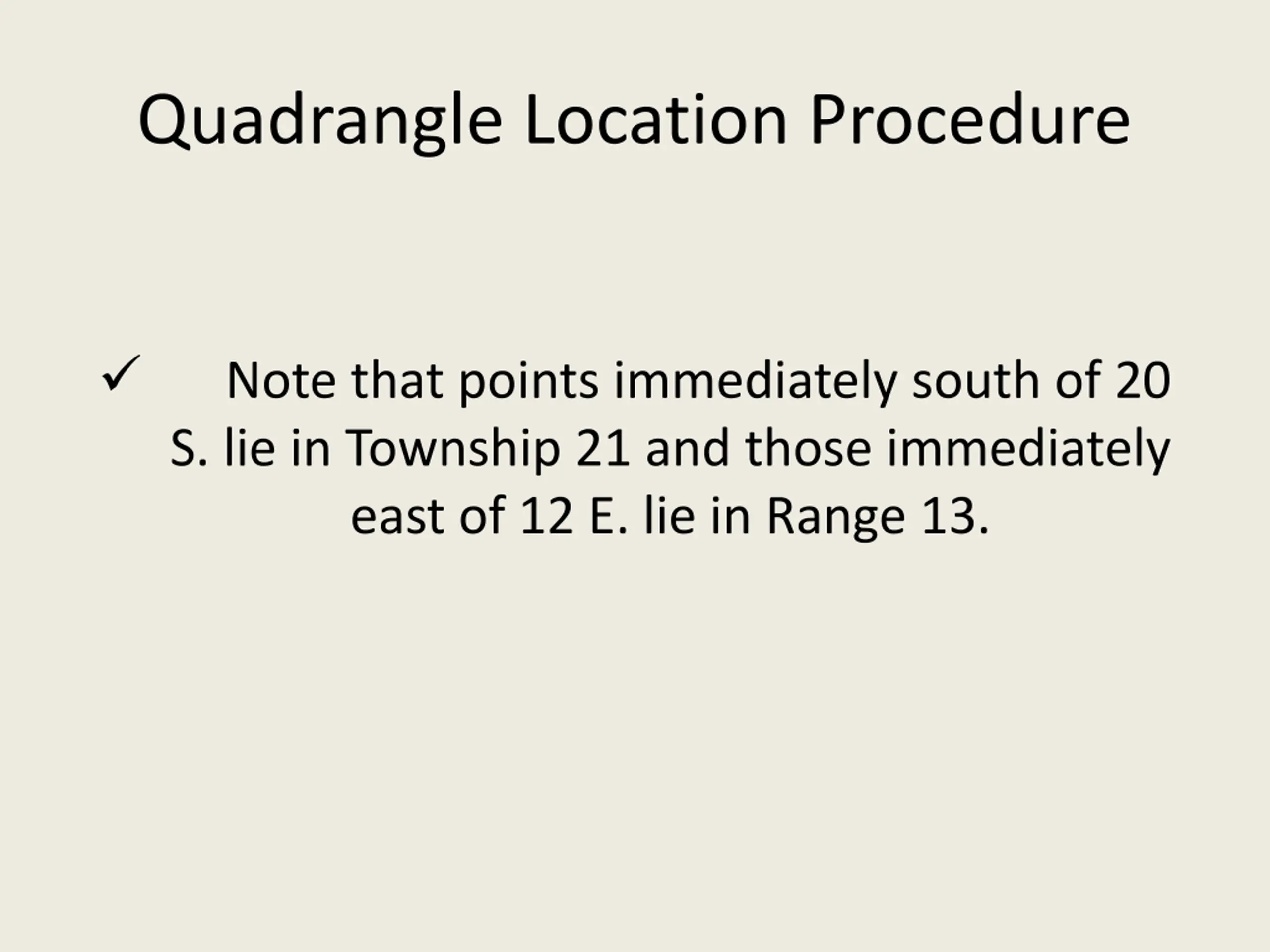 Quadrangle Location Procedure Note that points immediately south of 20 S. lie in Township 21 and those immediately east of 12 E. lie in Range 13.