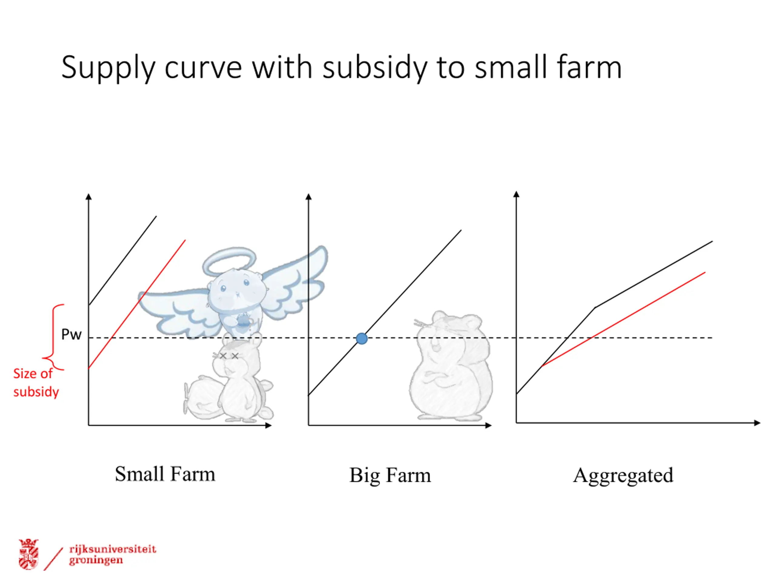 Supply curve with subsidy to small farm ?! Pw Size of subsidy Small Farm Big Farm Aggregated