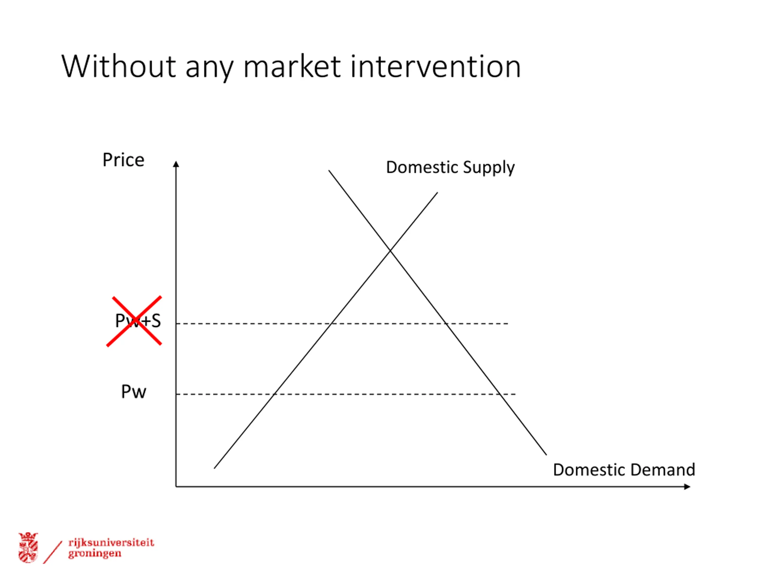 Without any market intervention Price Domestic Supply Pw+S Pw Domestic Demand