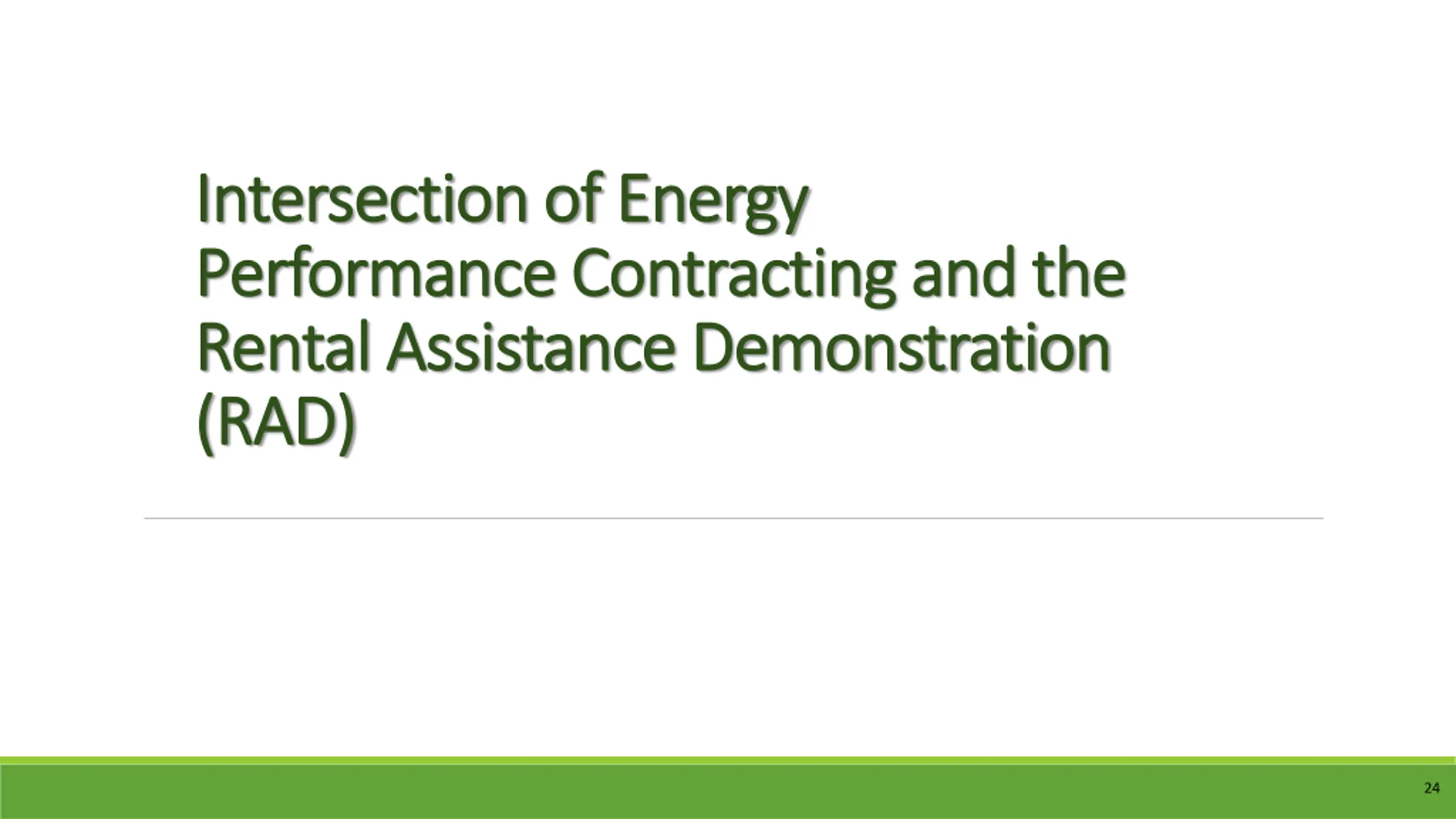 Intersection of Energy Intersection of Energy Performance Contracting and the Performance Contracting and the Rental Assistance Demonstration Rental Assistance Demonstration (RAD) (RAD) 24