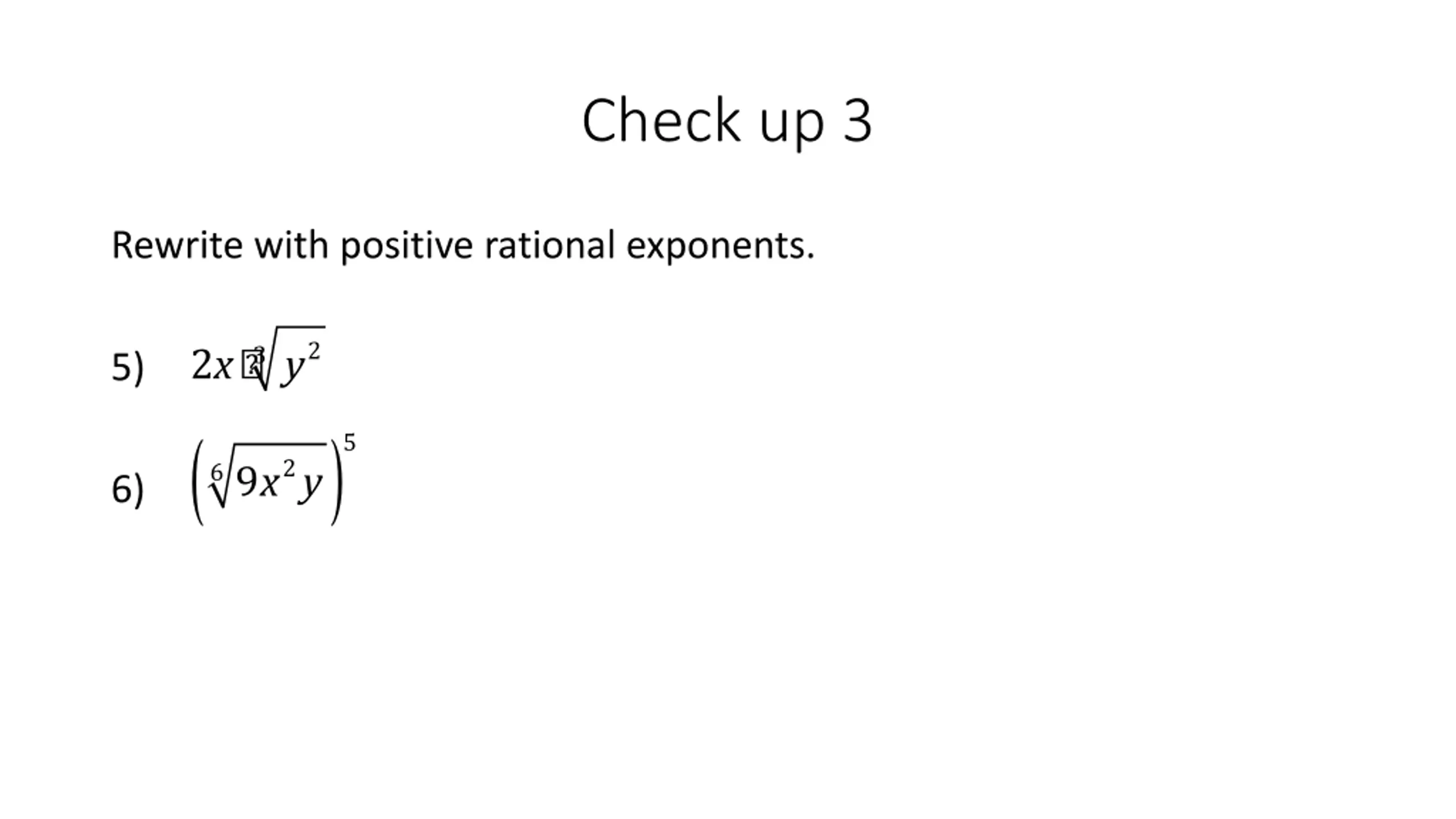 Check up 3 Rewrite with positive rational exponents. 2x? y2 3 5) 6( ) 5 9x2y 6)