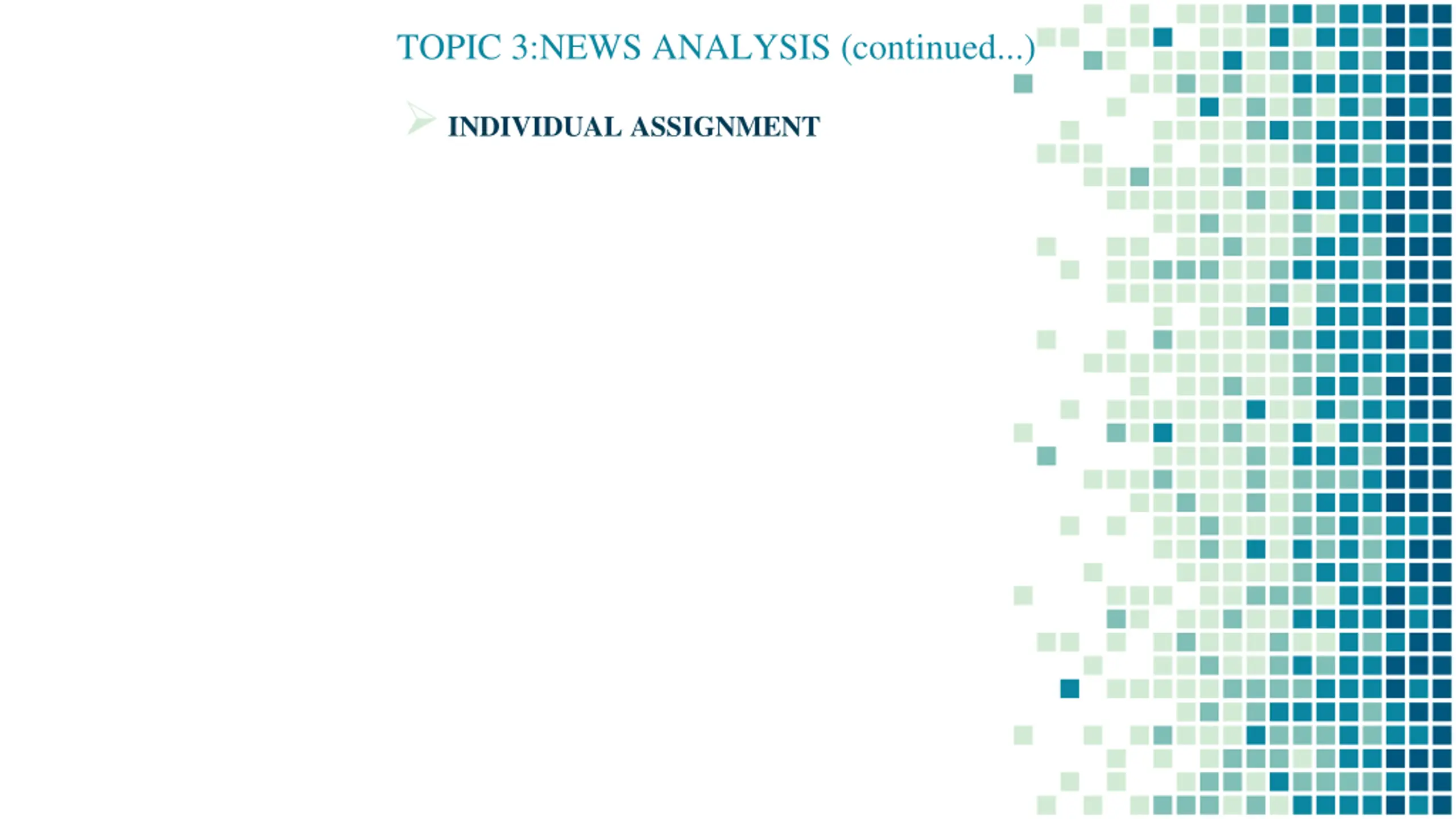TOPIC 3:NEWS ANALYSIS (continued...) INDIVIDUAL ASSIGNMENT