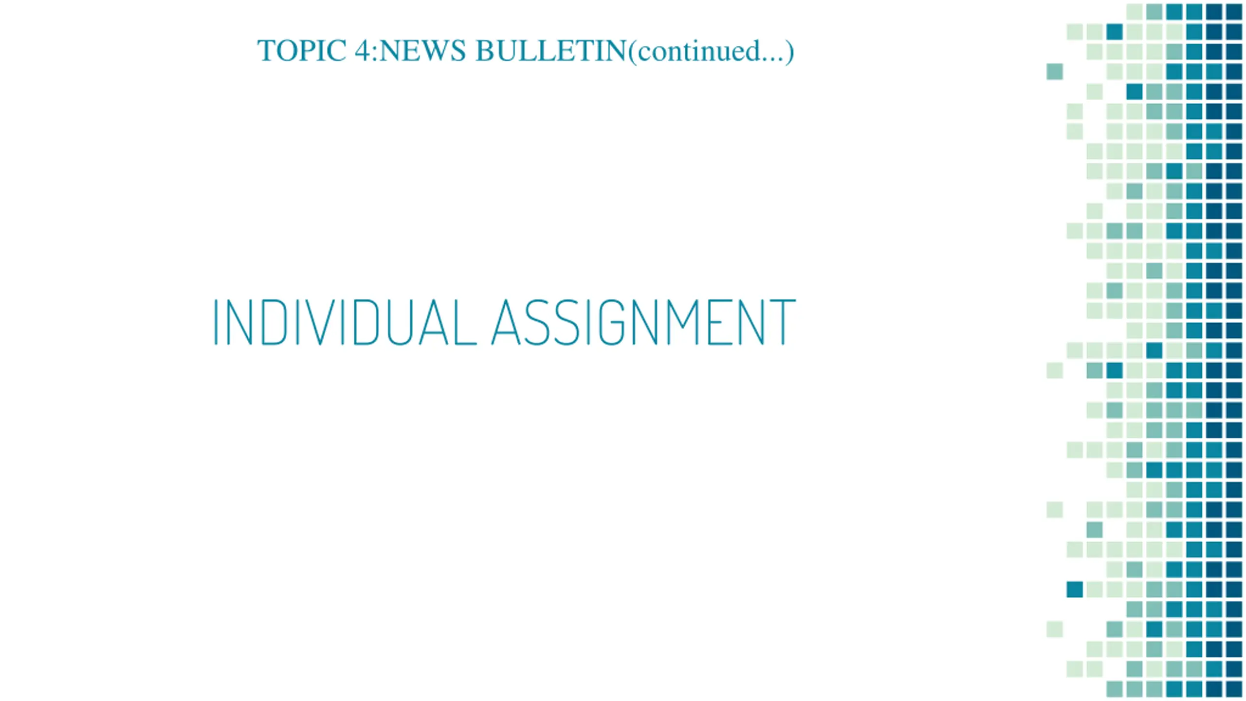 TOPIC 4:NEWS BULLETIN(continued...) INDIVIDUAL ASSIGNMENT