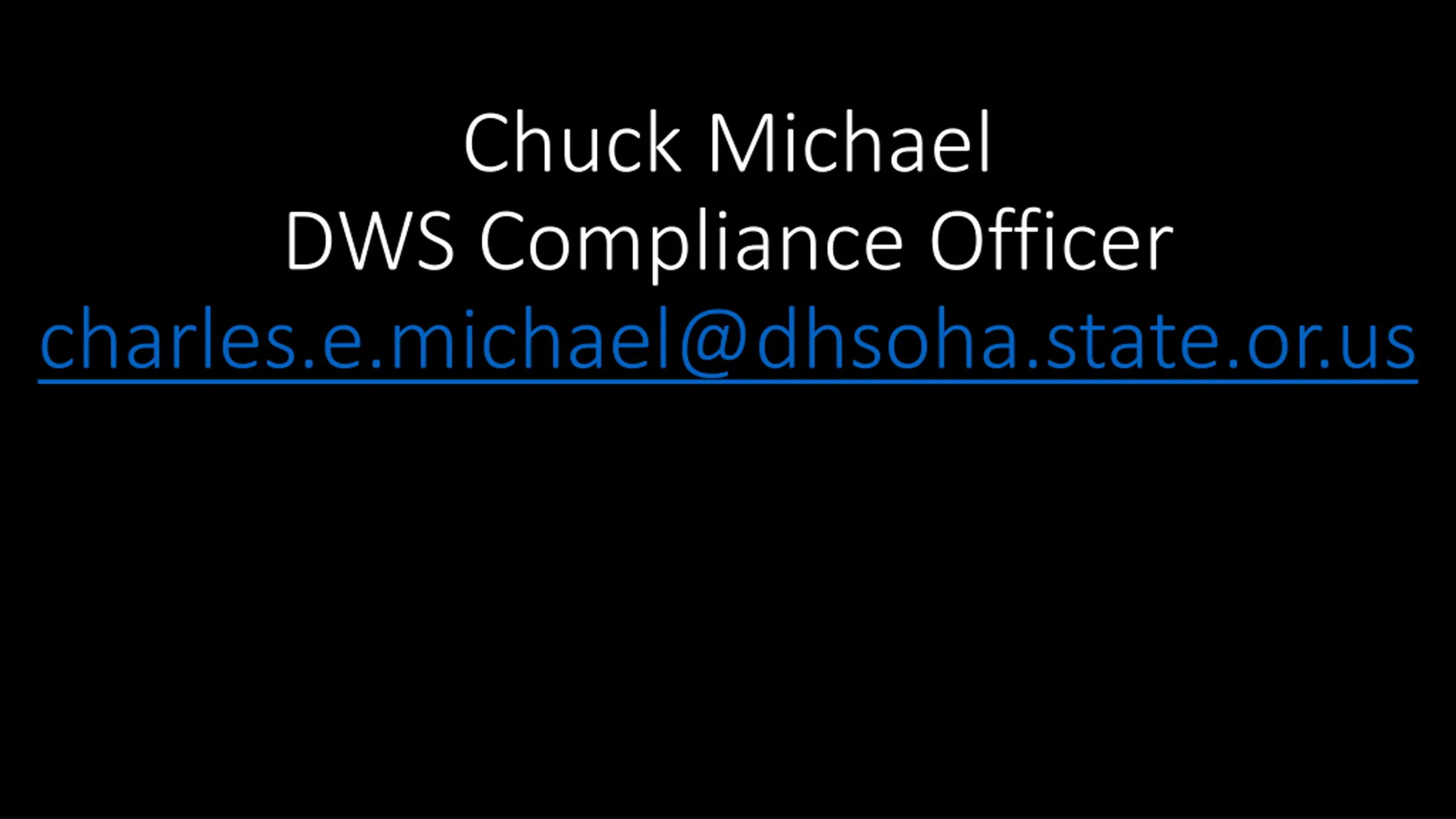 Chuck Michael DWS Compliance Officer charles.e.michael@dhsoha.state.or.us