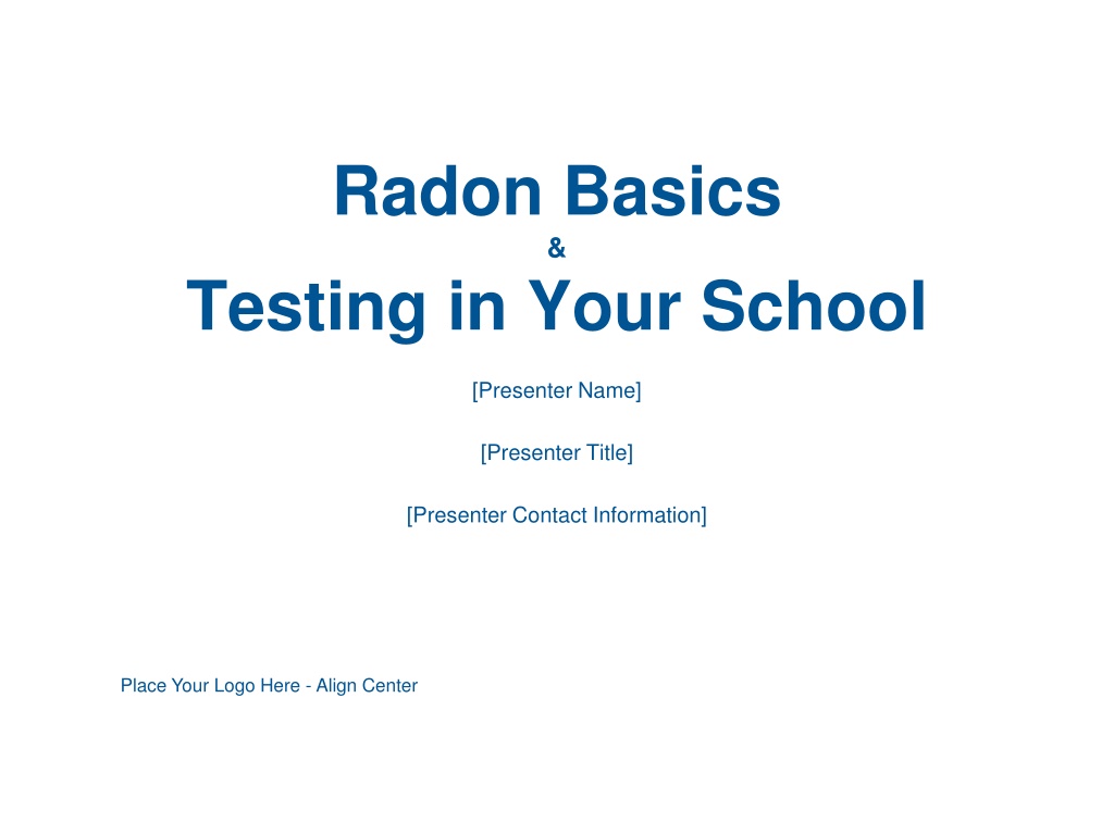 Radon Basics & Testing in Your School [Presenter Name] [Presenter Title] [Presenter Contact Information] Place Your Logo Here - Align Center