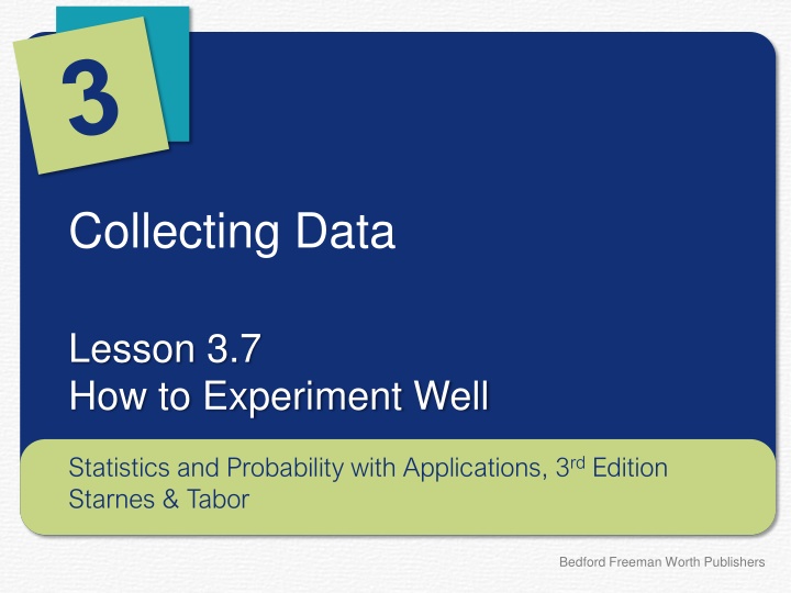 Collecting Data Lesson 3.7 How to Experiment Well Statistics and Probability with Applications, 3rdEdition Starnes & Tabor Bedford Freeman Worth Publishers