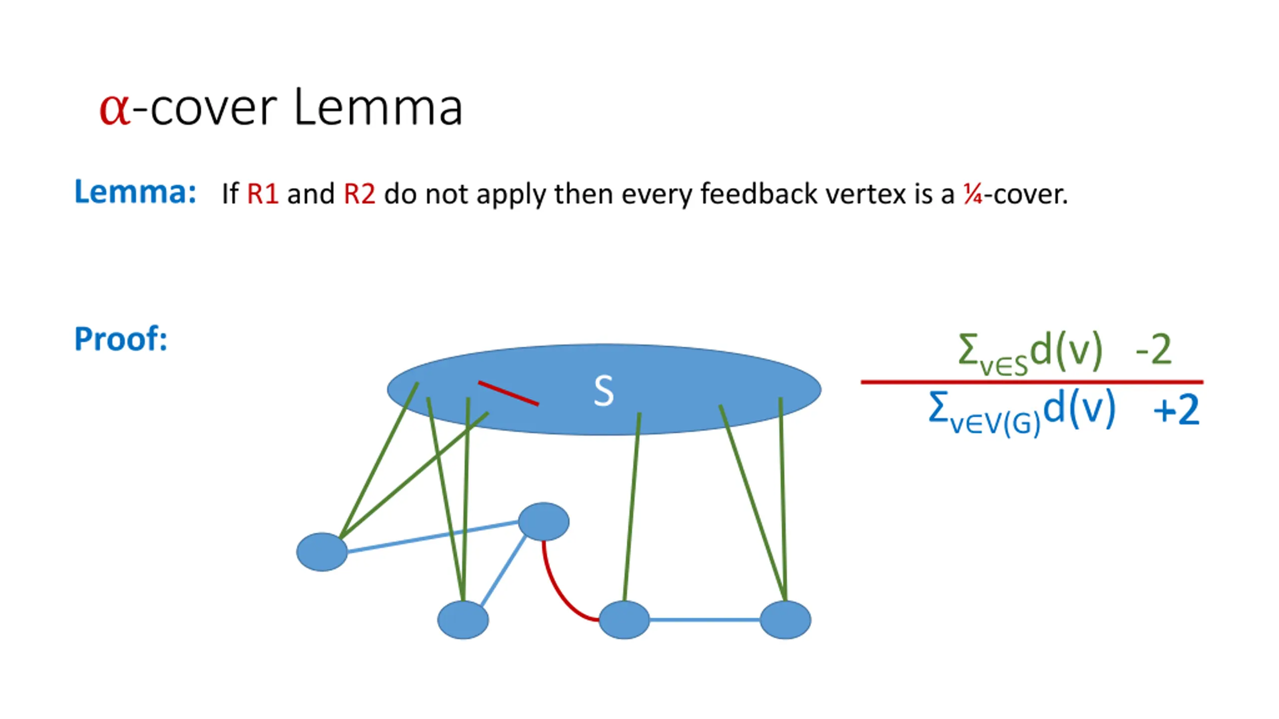 -cover Lemma A set S V(G) is an -cover if v Sd(v) v V(G)d(v) (= 2m) Lemma: If R1 and R2 do not apply, then every feedback vertex set S of G is a -cover.