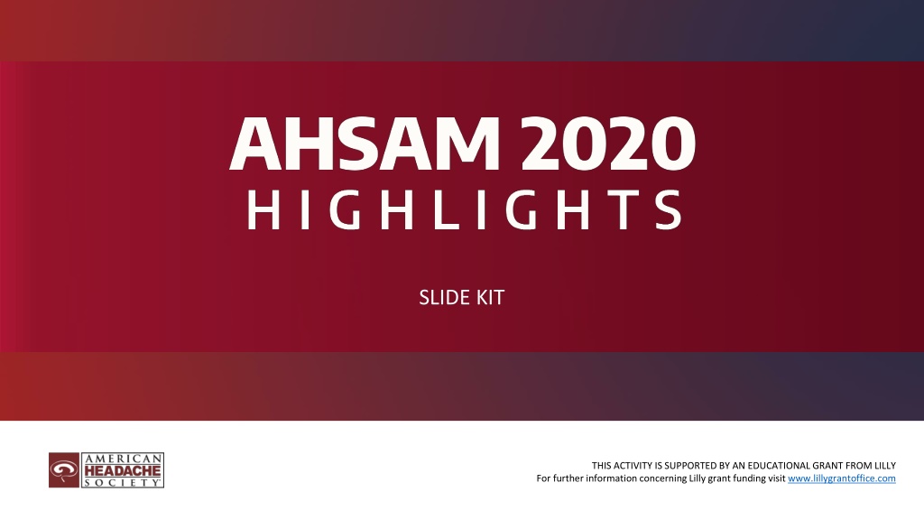 A detailed presentation on the effectiveness of Eptinezumab in providing rapid and sustained preventative relief for migraine patients, supported by an educational grant from Lilly. Key messages and background information from the American Headache Society's virtual annual scientific meeting are highlighted, emphasizing the unmet need for a preventative treatment with quick clinical benefits.