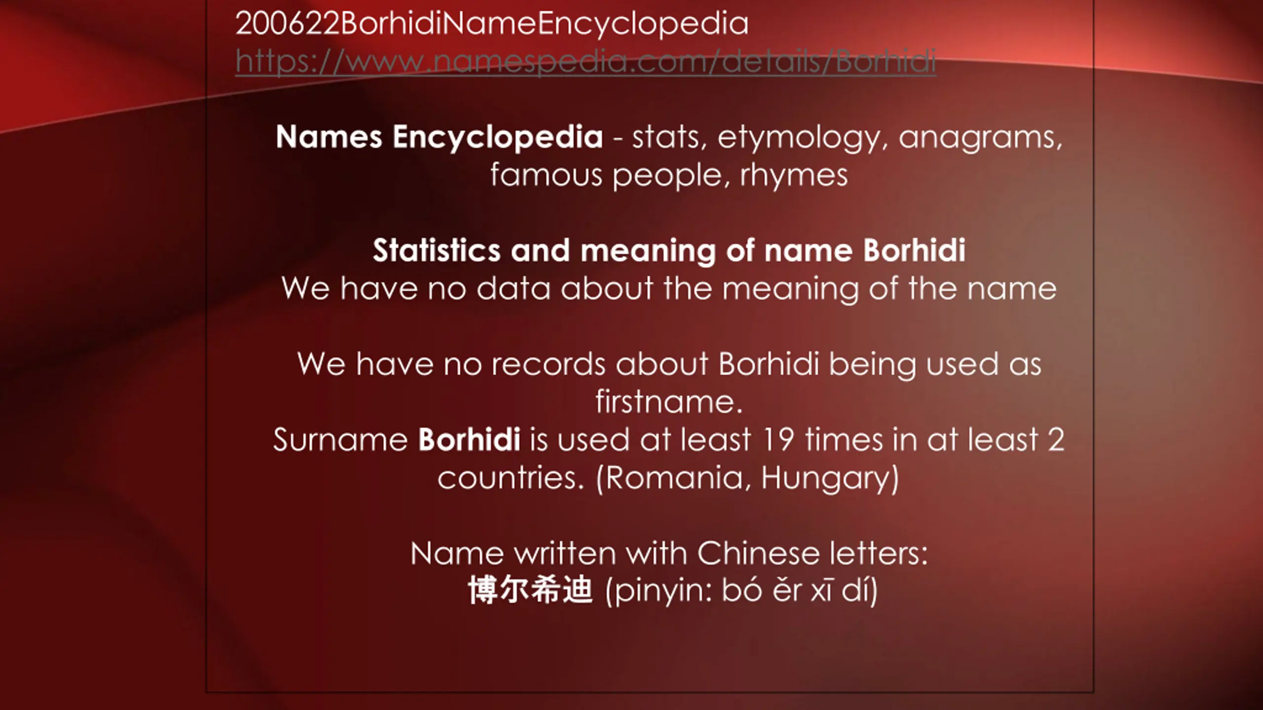 200622BorhidiNameEncyclopedia https://www.namespedia.com/details/Borhidi Names Encyclopedia - stats, etymology, anagrams, famous people, rhymes Statistics and meaning of name Borhidi We have no data about the meaning of the name We have no records about Borhidi being used as firstname. Surname Borhidi is used at least 19 times in at least 2 countries. (Romania, Hungary) Name written with Chinese letters: (pinyin: b rx d )