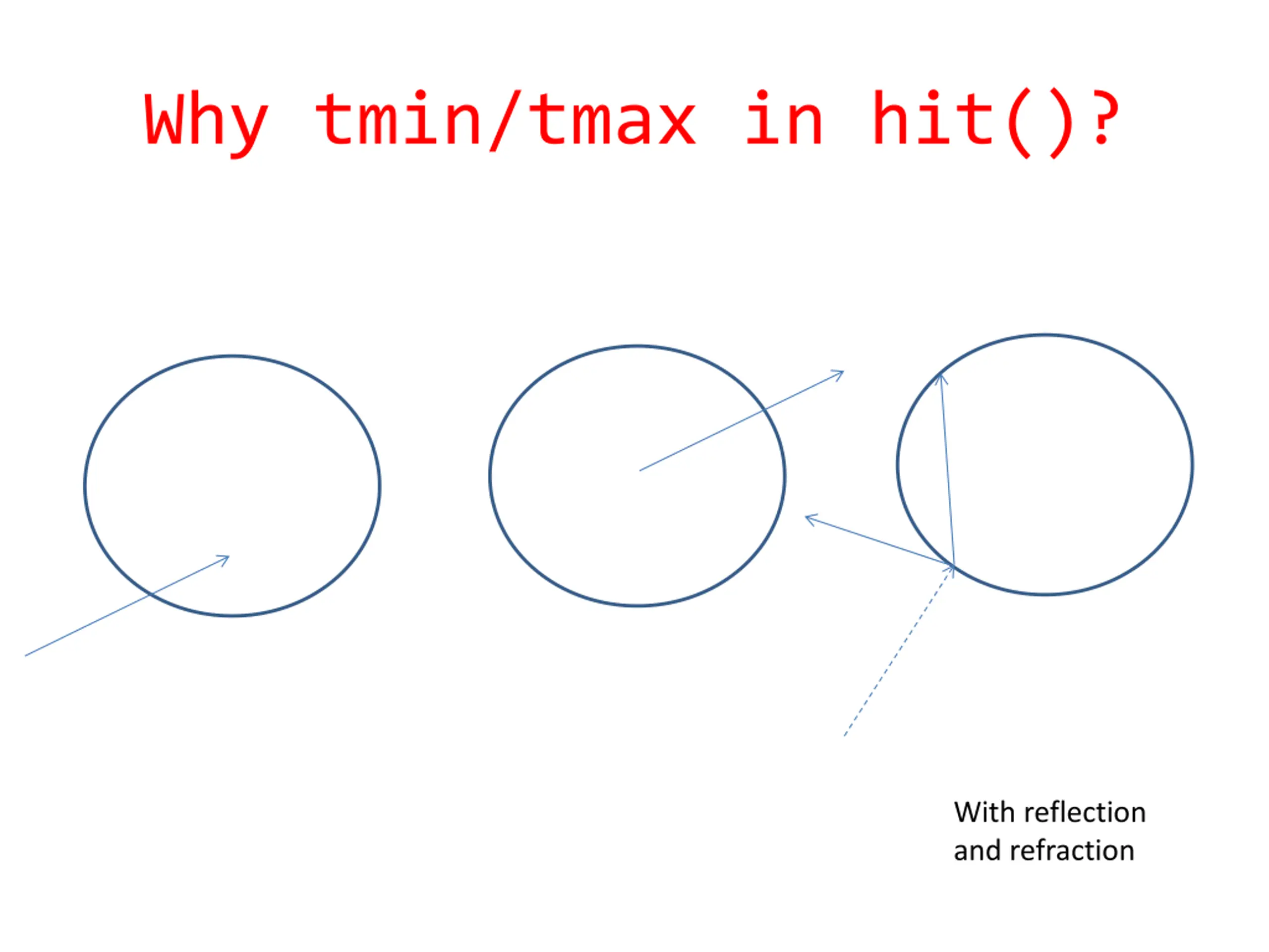 Why tmin/tmax in hit()? With reflection and refraction