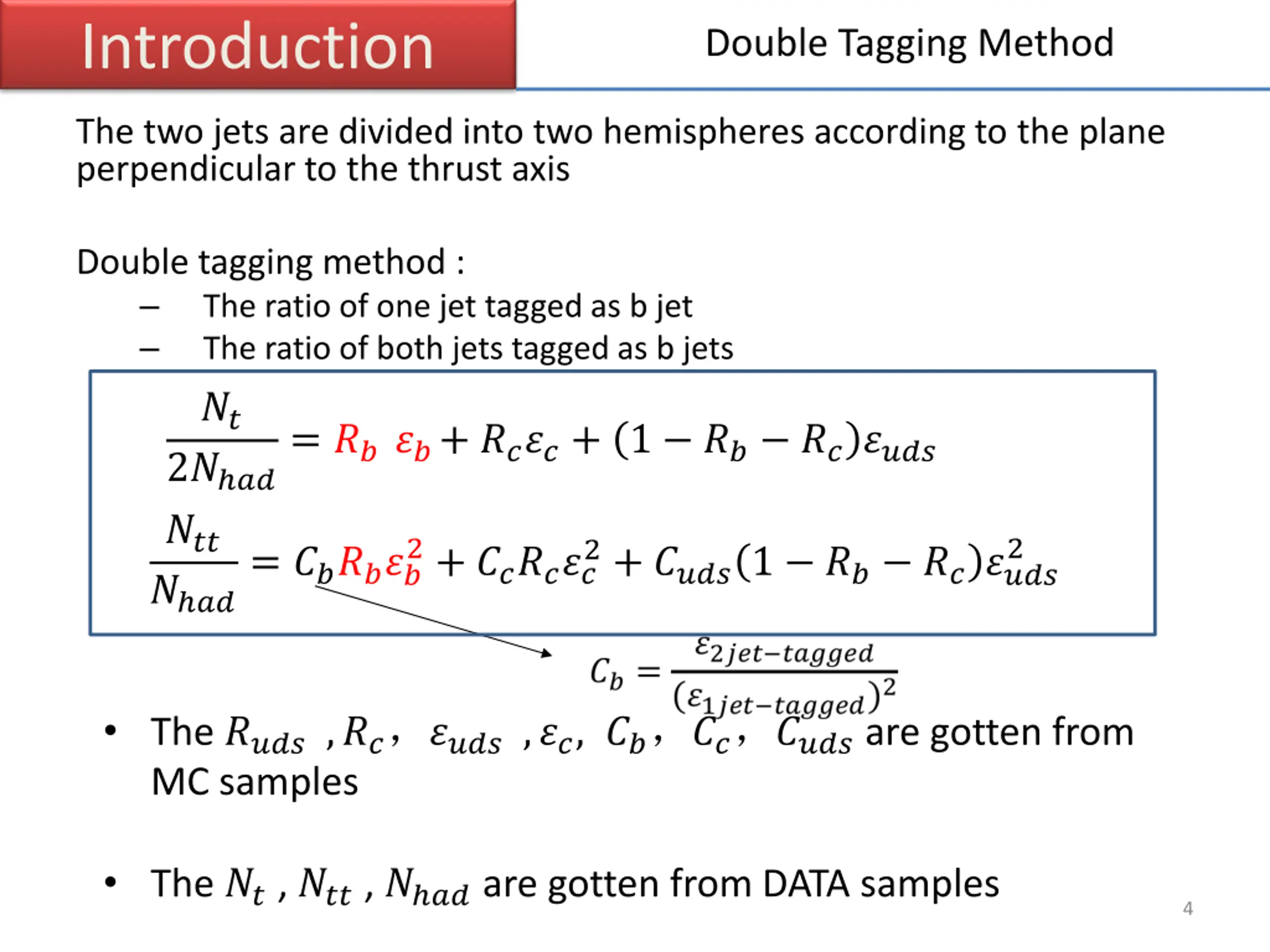 Introduction Double Tagging Method The two jets are divided into two hemispheres according to the plane perpendicular to the thrust axis Double tagging method : The ratio of one jet tagged as b jet The ratio of both jets tagged as b jets ?? 2? ?? ??? ? ?? = ????+ ????+ 1 ?? ?????? 2+ ??????2+ ????1 ?? ?????? 2 = ?????? The ????,?? ????,??, ?? ?? ????are gotten from MC samples The ??, ???, ? ??are gotten from DATA samples 4