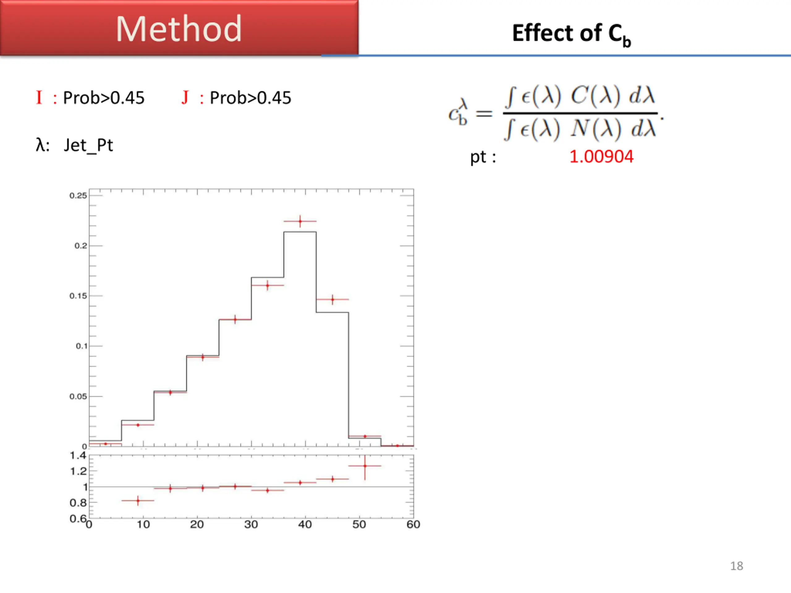 Method Effect of Cb I : Prob>0.45 J : Prob>0.45 : Jet_Pt pt : 1.00904 18