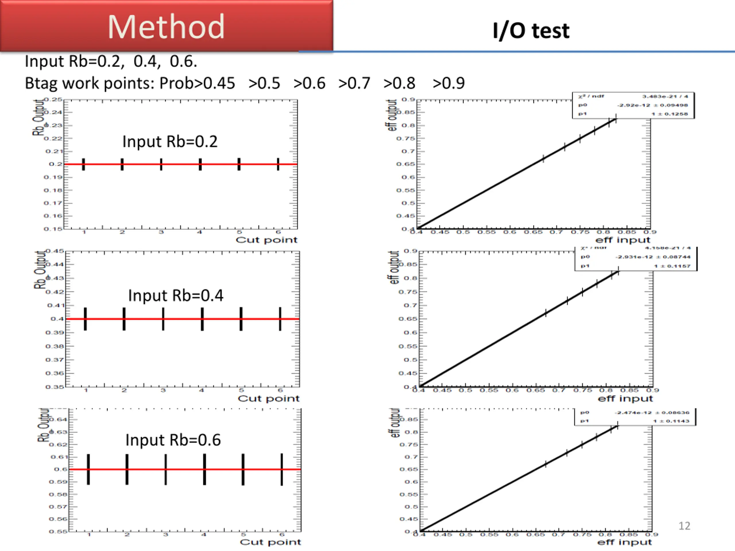 Method I/O test Input Rb=0.2, 0.4, 0.6. Btag work points: Prob>0.45 >0.5 >0.6 >0.7 >0.8 >0.9 Input Rb=0.2 Input Rb=0.4 Input Rb=0.6 12