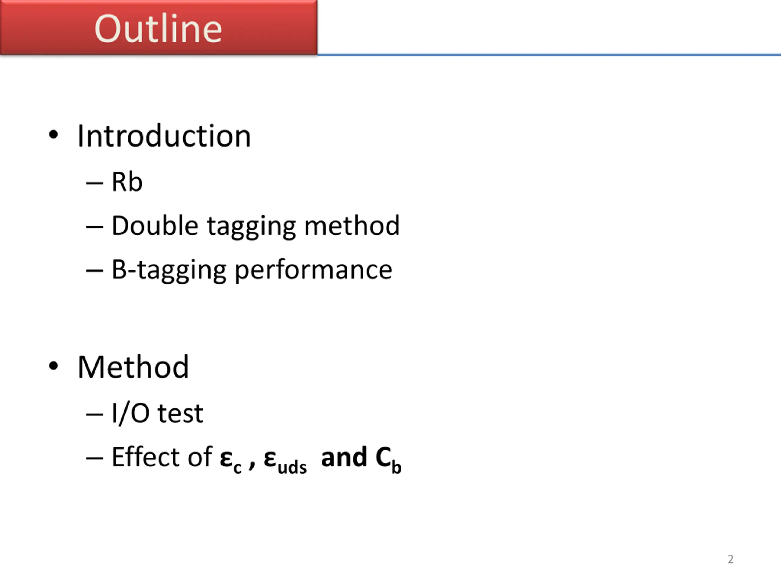 Outline Introduction Rb Double tagging method B-tagging performance Method I/O test Effect of c, udsand Cb 2