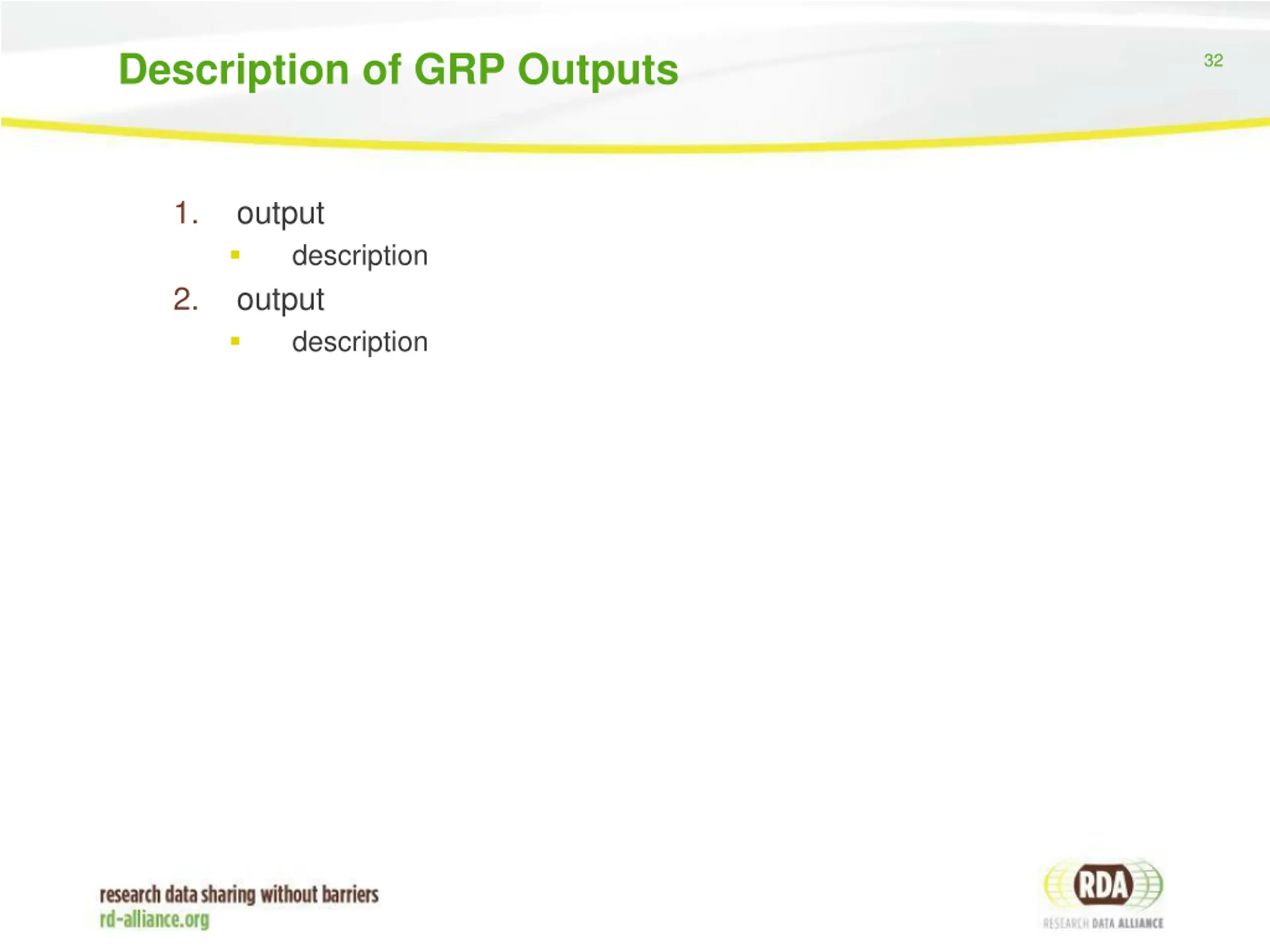 Description of GRP Outputs 32 1. output output description 2. description