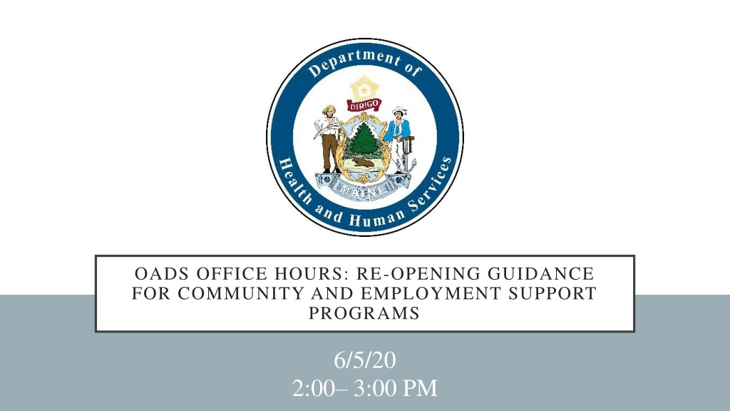 OADS OFFICE HOURS: RE-OPENING GUIDANCE FOR COMMUNITY AND EMPLOYMENT SUPPORT PROGRAMS 6/5/20 2:00 3:00 PM