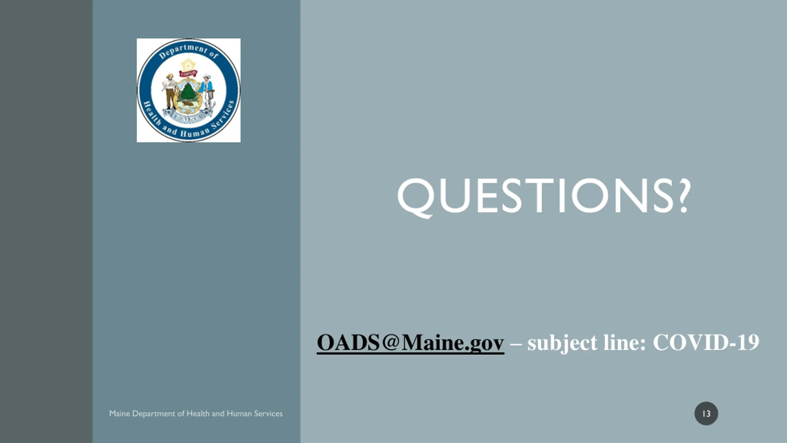 QUESTIONS? OADS@Maine.gov subject line: COVID-19 13