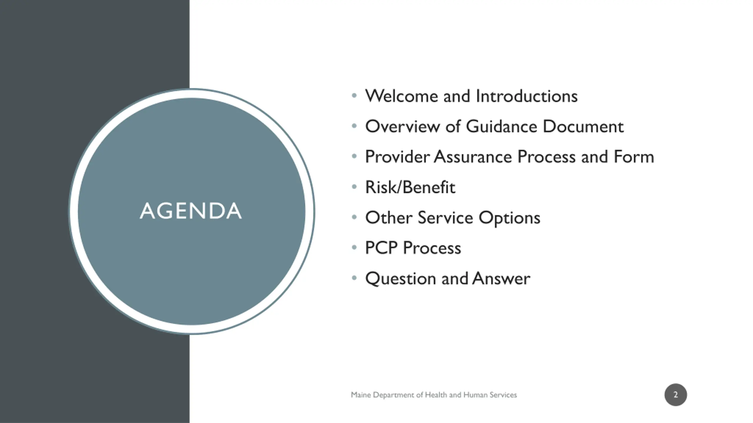 Welcome and Introductions Overview of Guidance Document Provider Assurance Process and Form Risk/Benefit Other Service Options PCP Process Question and Answer AGENDA 2