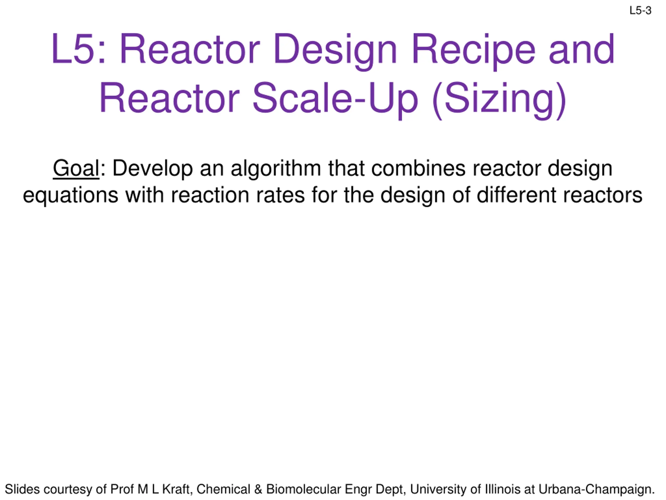 L5-3 L5: Reactor Design Recipe and Reactor Scale-Up (Sizing) Goal: Develop an algorithm that combines reactor design equations with reaction rates for the design of different reactors Slides courtesy of Prof M L Kraft, Chemical & Biomolecular Engr Dept, University of Illinois at Urbana-Champaign.