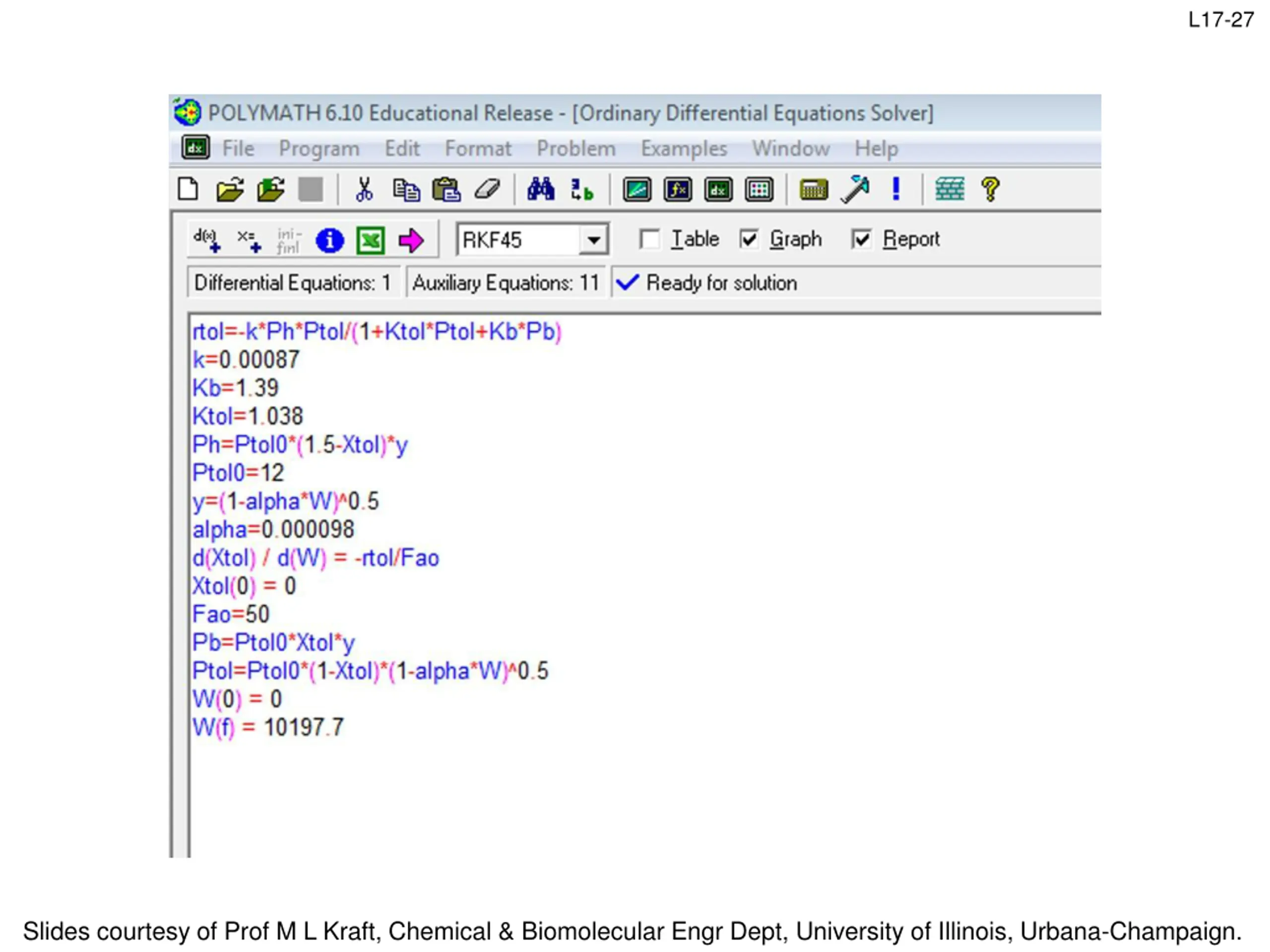 L17-27 Slides courtesy of Prof M L Kraft, Chemical & Biomolecular Engr Dept, University of Illinois, Urbana-Champaign.