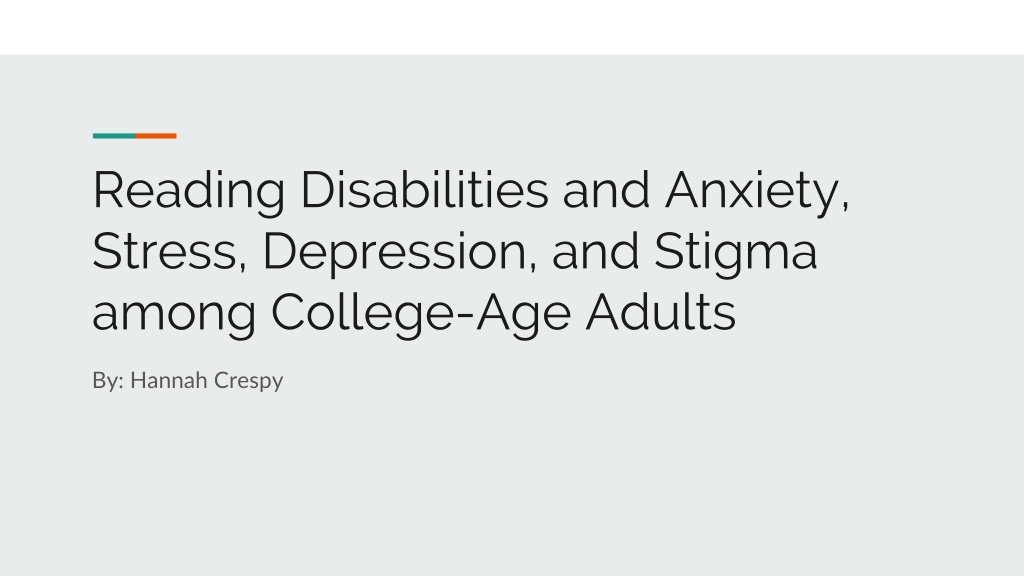 Reading Disabilities and Anxiety, Stress, Depression, and Stigma among College-Age Adults By: Hannah Crespy