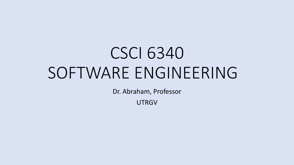 CSCI 6340 SOFTWARE ENGINEERING Dr. Abraham, Professor UTRGV