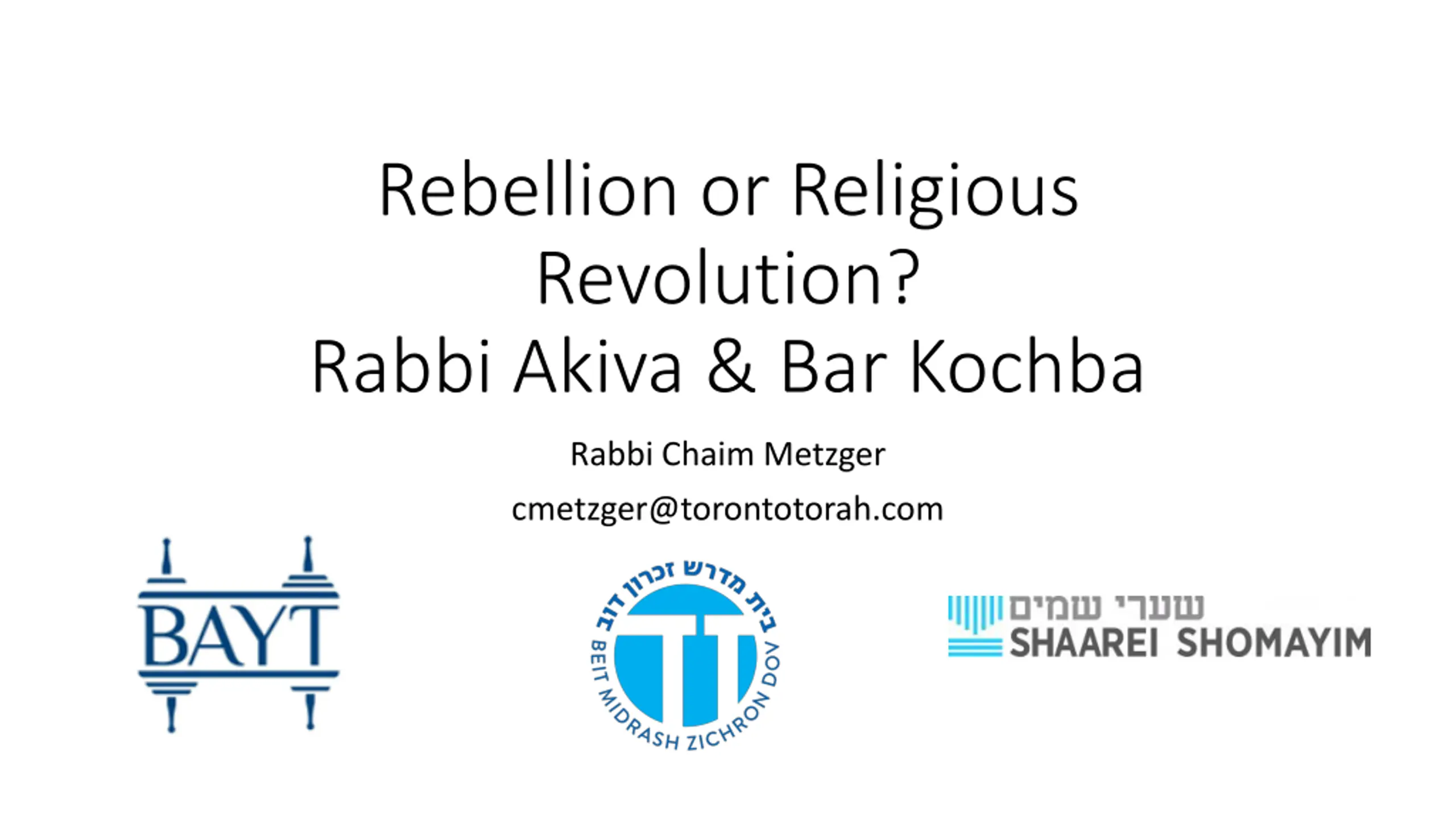 Rebellion or Religious Revolution? Rabbi Akiva & Bar Kochba Rabbi Chaim Metzger cmetzger@torontotorah.com