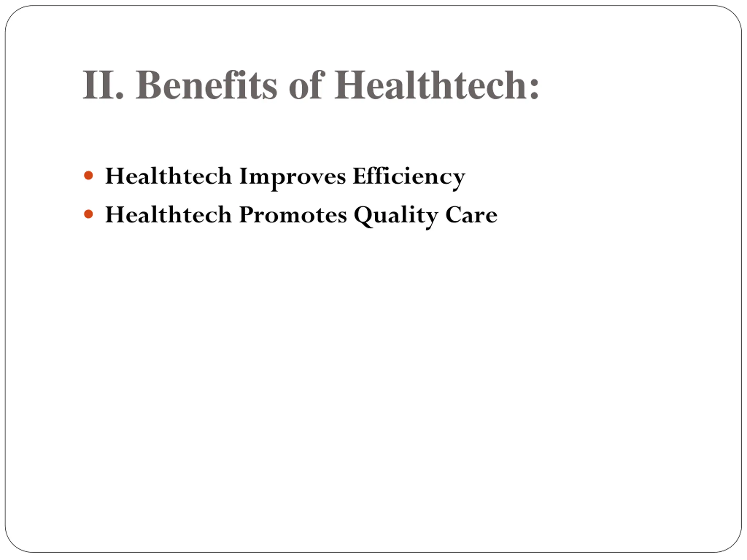 II. Benefits of Healthtech: Healthtech Improves Efficiency Healthtech Promotes Quality Care