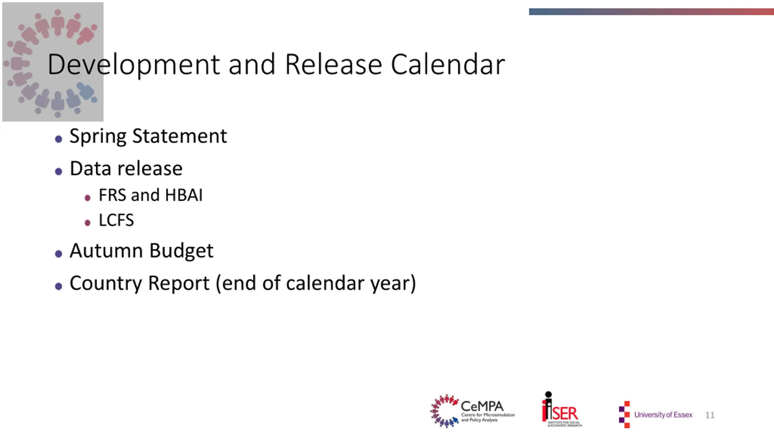 Development and Release Calendar Spring Statement Data release FRS and HBAI LCFS Autumn Budget Country Report (end of calendar year) 11