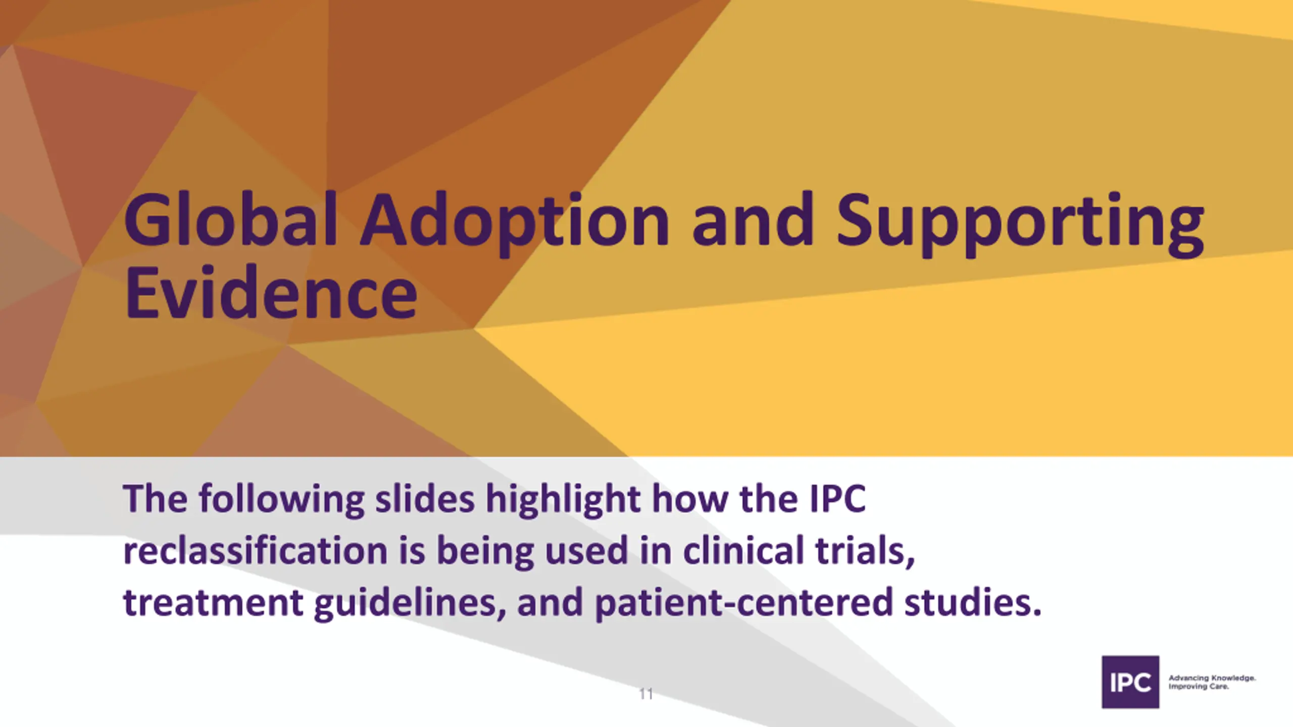 Global Adoption and Supporting Evidence The following slides highlight how the IPC reclassification is being used in clinical trials, treatment guidelines, and patient-centered studies. 11