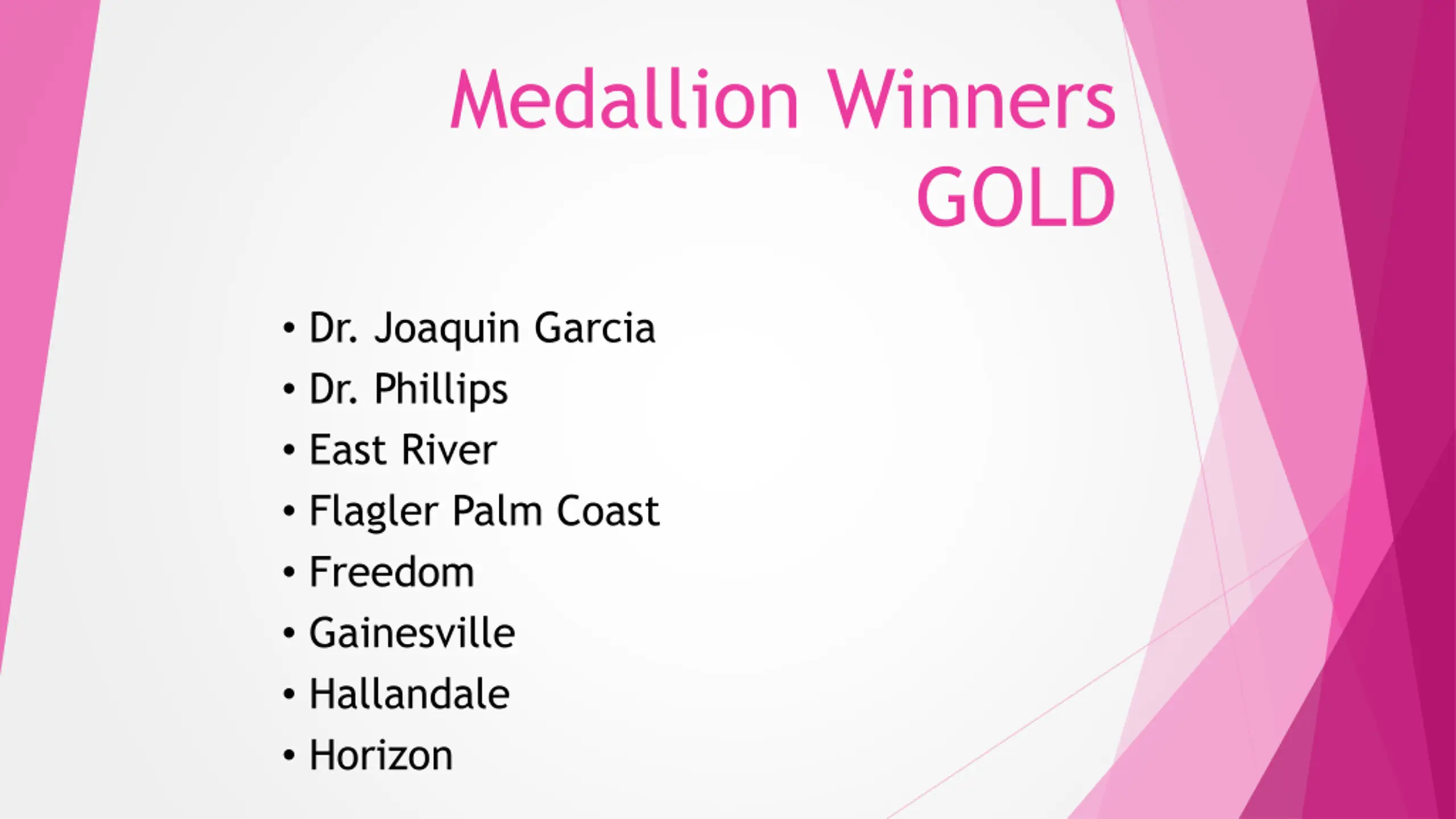 Medallion Winners GOLD Dr. Joaquin Garcia Dr. Phillips East River Flagler Palm Coast Freedom Gainesville Hallandale Horizon