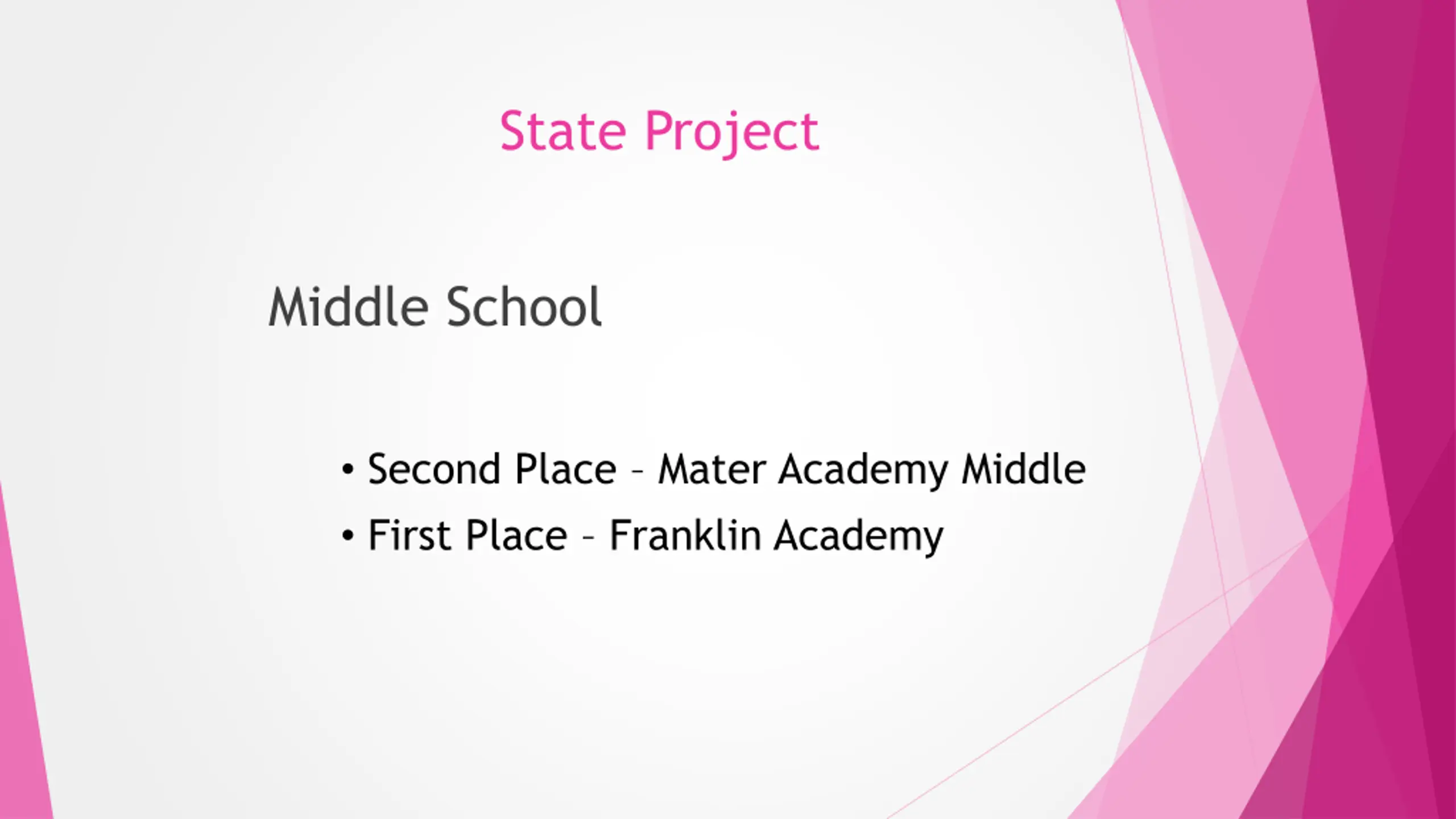 State Project Middle School Second Place Mater Academy Middle First Place Franklin Academy