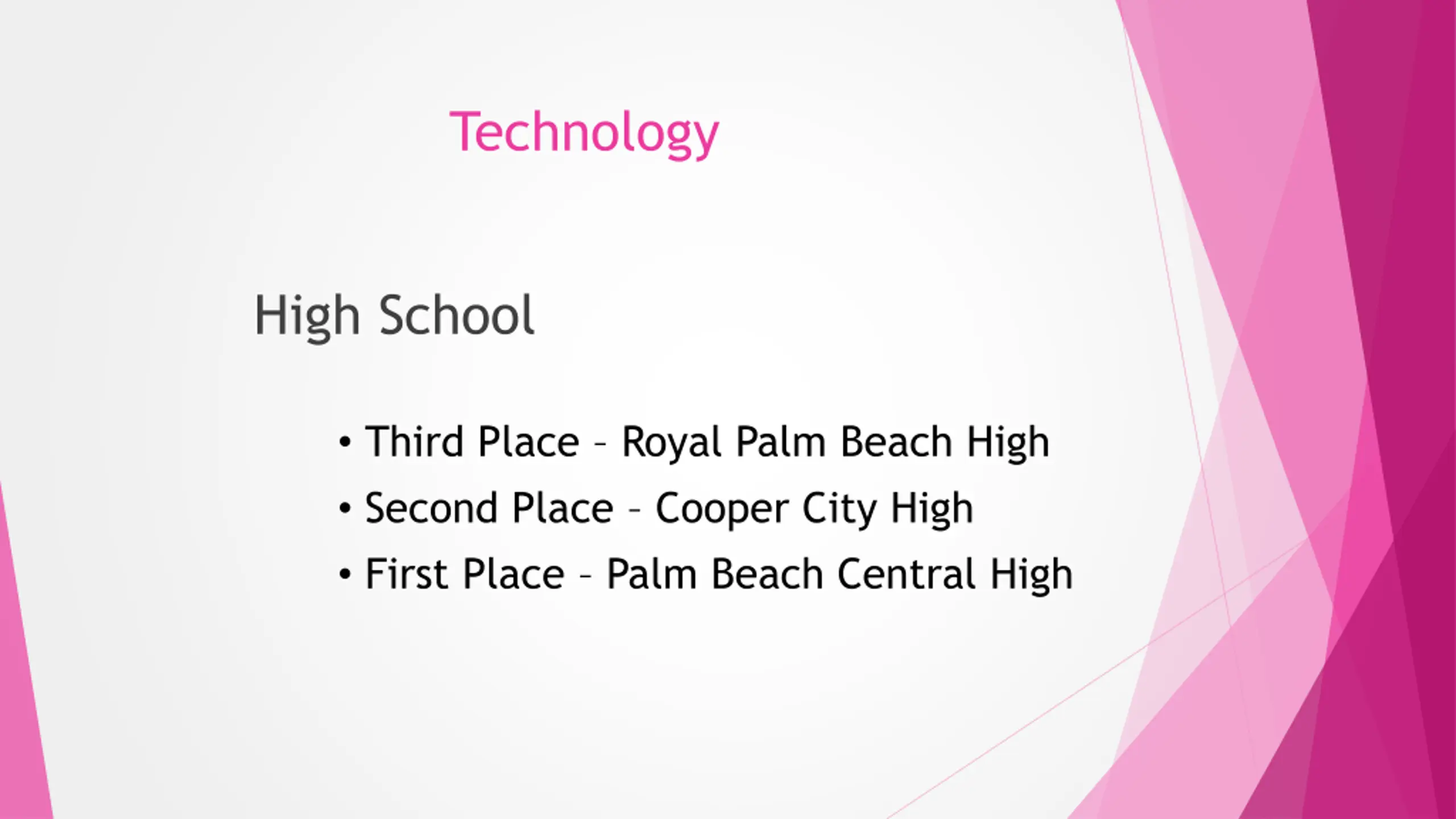 Technology High School Third Place Royal Palm Beach High Second Place Cooper City High First Place Palm Beach Central High