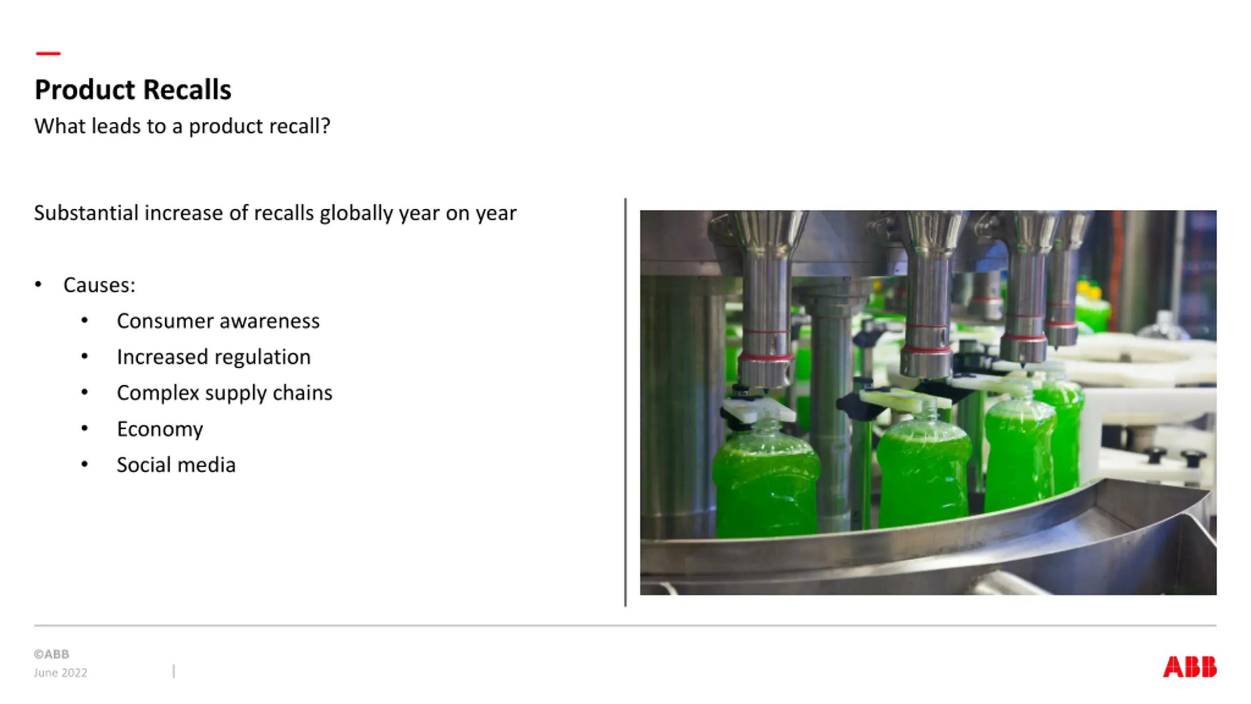 Product Recalls What leads to a product recall? Substantial increase of recalls globally year on year Causes: Consumer awareness Increased regulation Complex supply chains Economy Social media June 2022