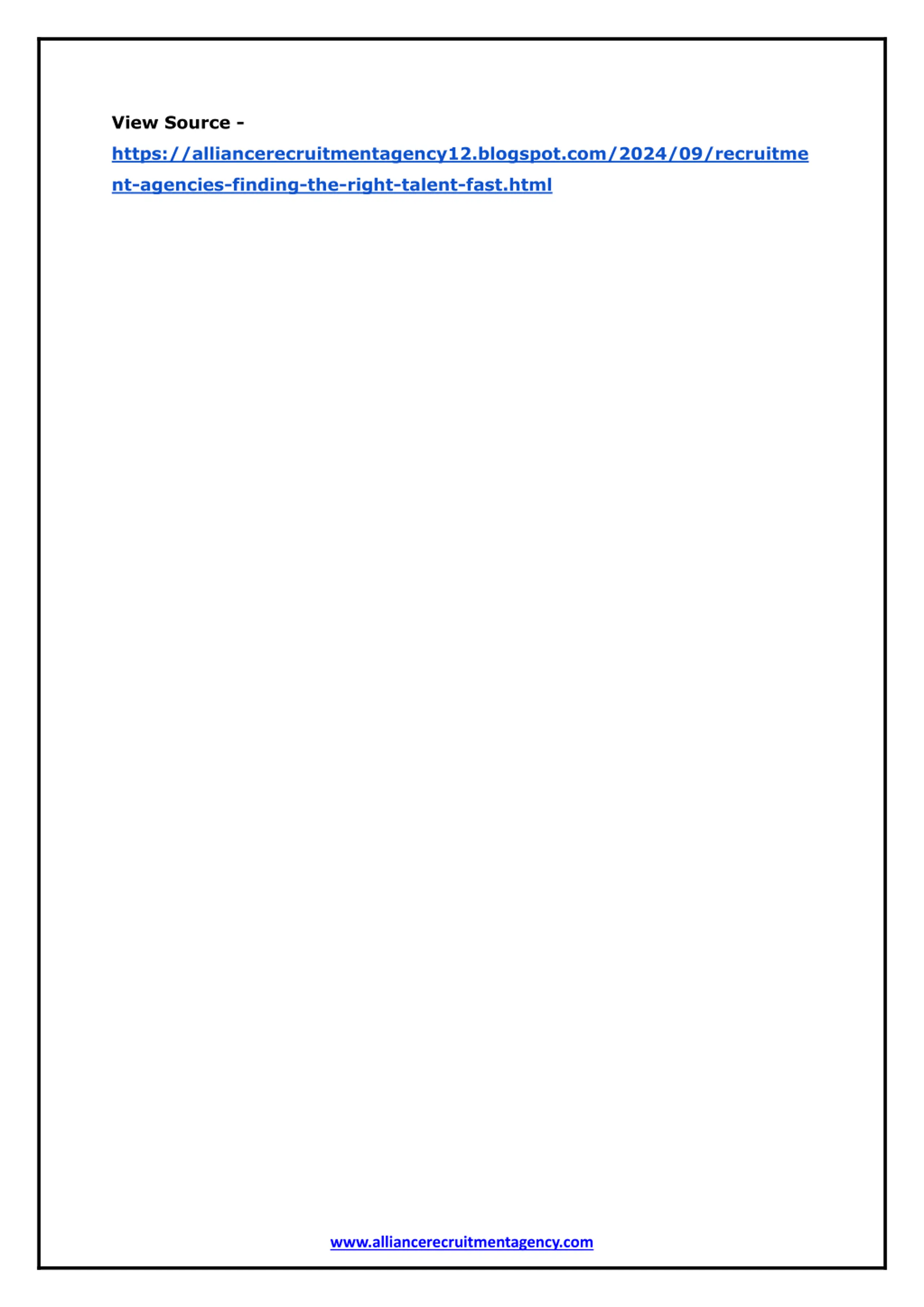 View Source - https://alliancerecruitmentagency12.blogspot.com/2024/09/recruitme nt-agencies-finding-the-right-talent-fast.html www.alliancerecruitmentagency.com