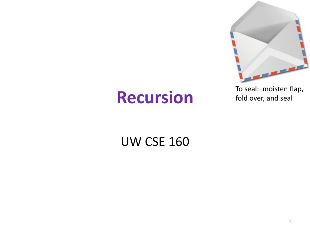 To seal: moisten flap, fold over, and seal Recursion UW CSE 160 1