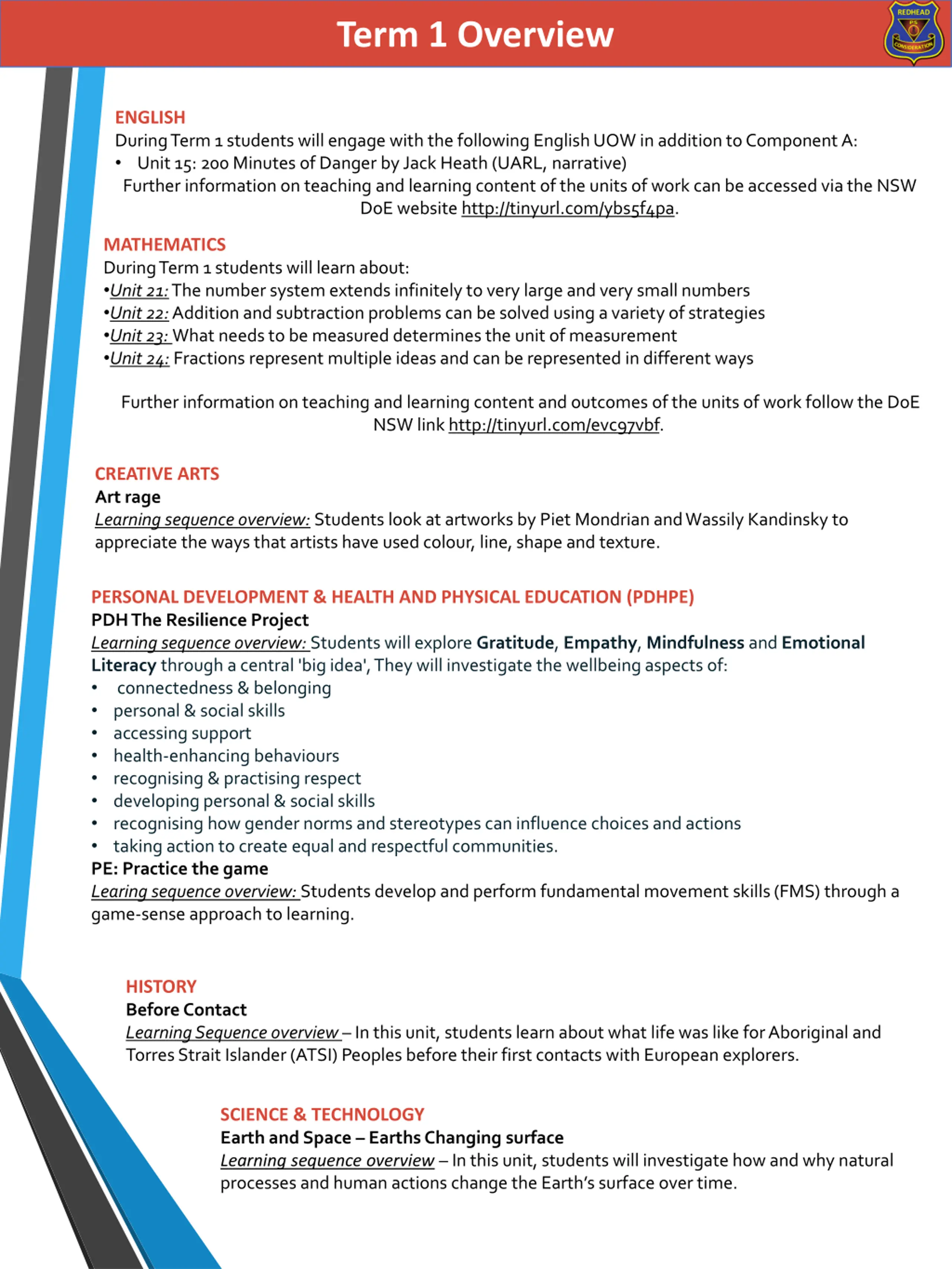 Termly Curriculum Overviews Term 1 Term 4 Term 2 Term 3 In response the new Key Learning Area's Units of work being made available from Term 3, updates to this document will be made mid-year regarding teaching and learning for semester 2.