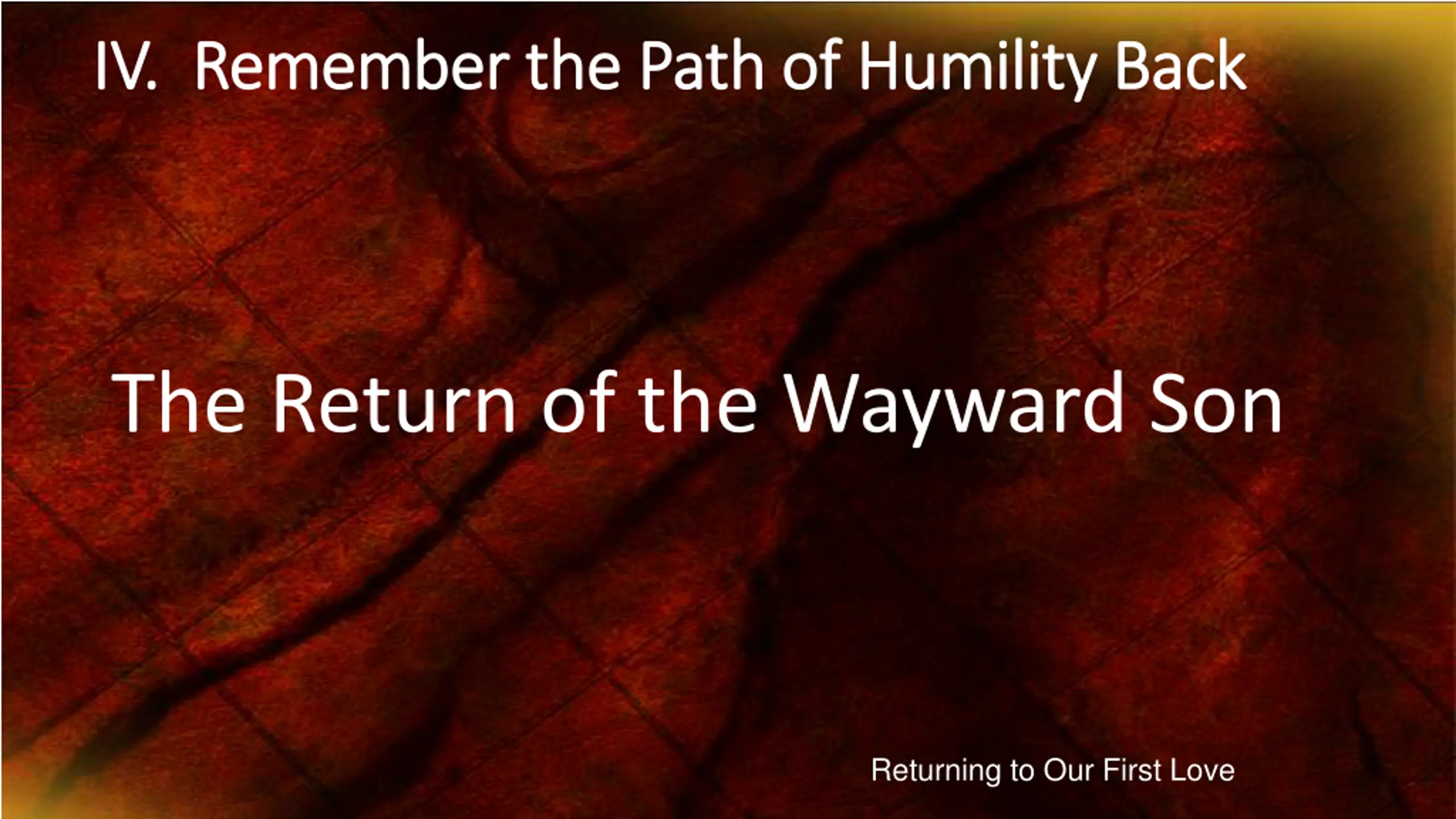IV. Remember the Path of Humility Back IV. Remember the Path of Humility Back The Return of the Wayward Son Returning to Our First Love