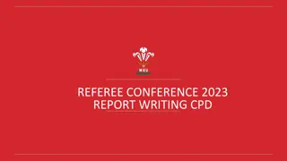 The Coaches Debrief Process Short, sharp and brutal Highlight positives as well as where improvement is needed If possible let the referee solve issues Focus on outcomes but not at the expense of law/management Talk about things that matter and the clear & Obvious Conclude with objectives for the next game (s)