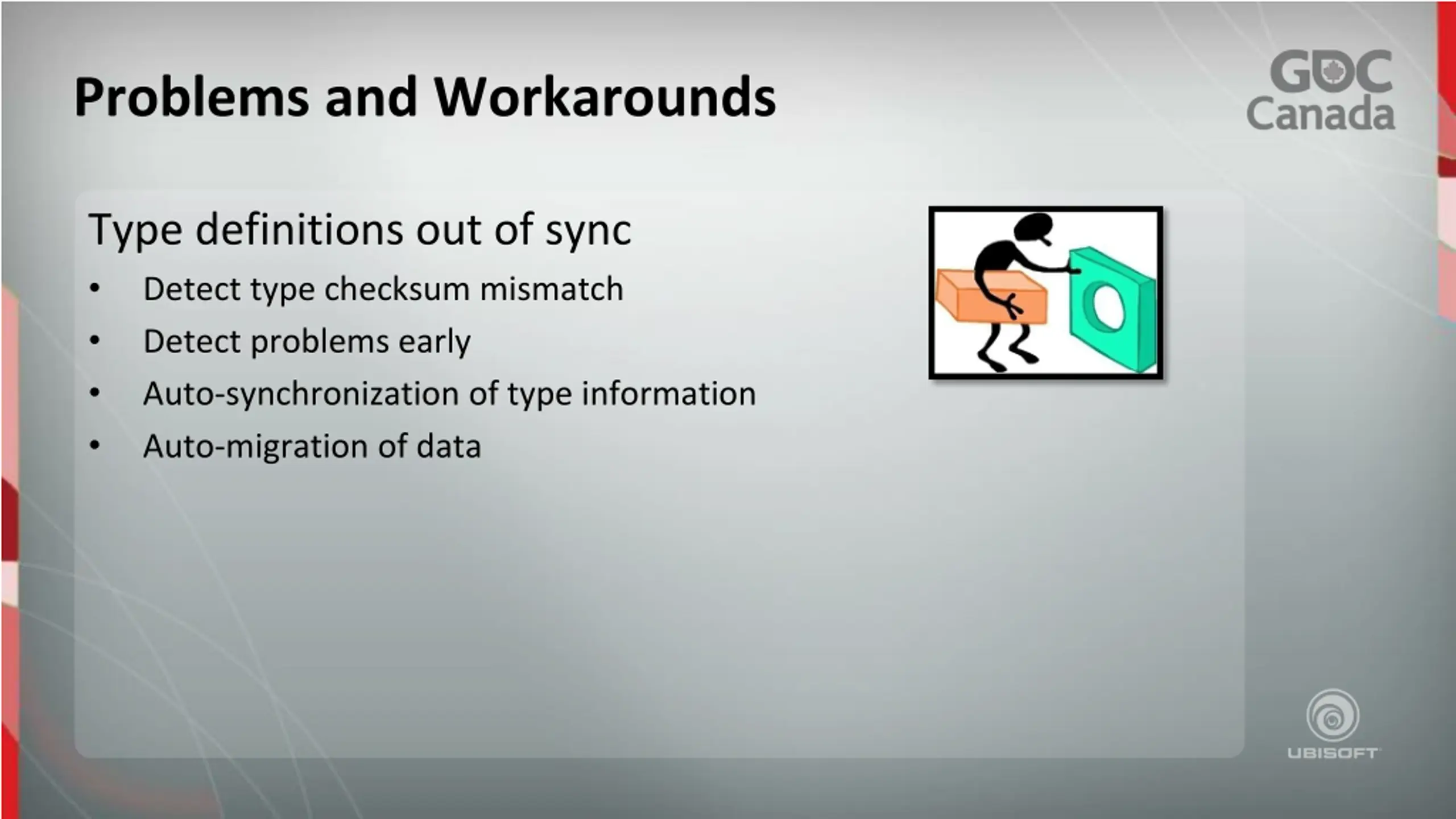 Problems and Workarounds Type definitions out of sync Detect type checksum mismatch Detect problems early Auto-synchronization of type information Auto-migration of data
