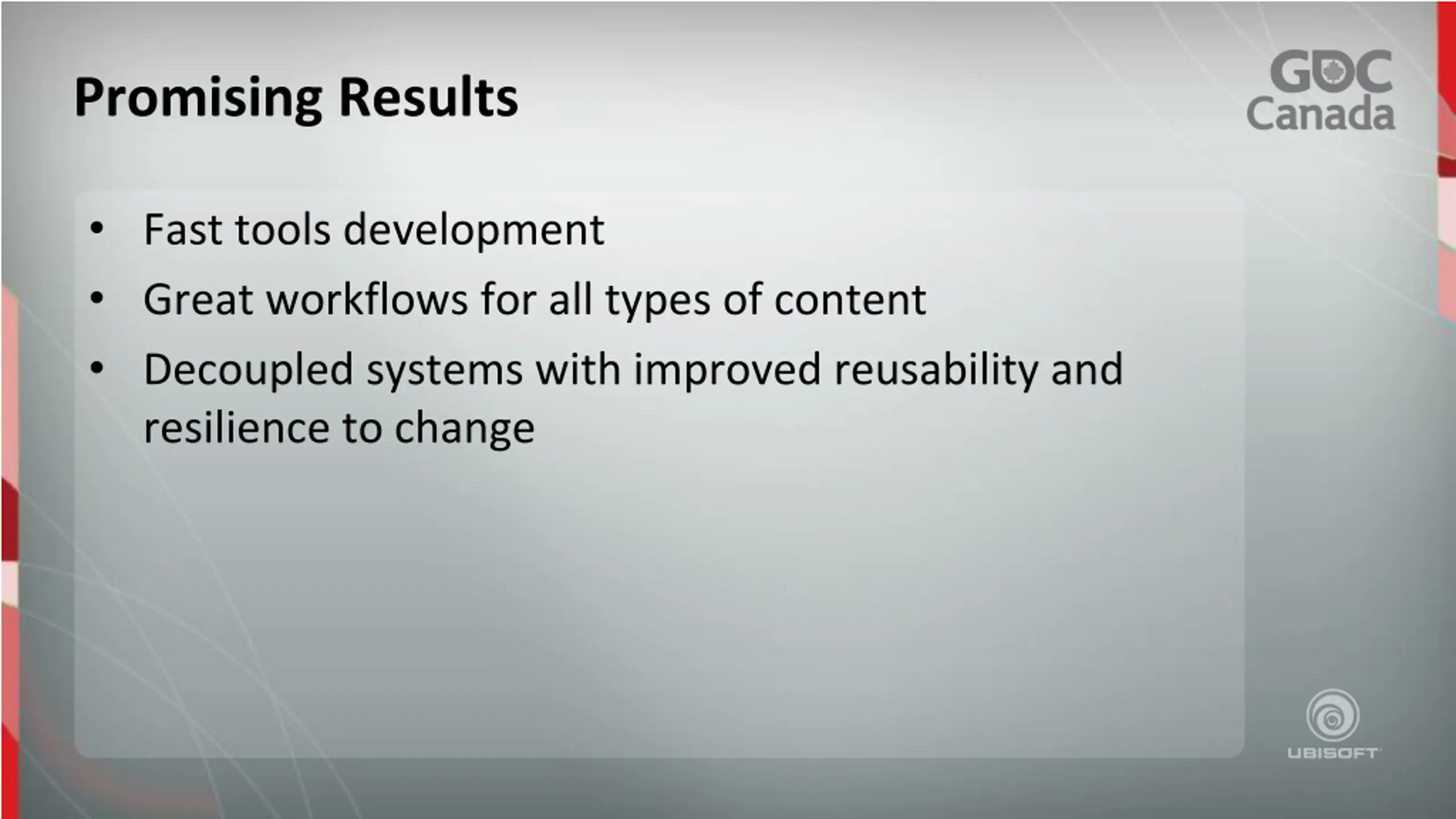 Promising Results Fast tools development Great workflows for all types of content Decoupled systems with improved reusability and resilience to change