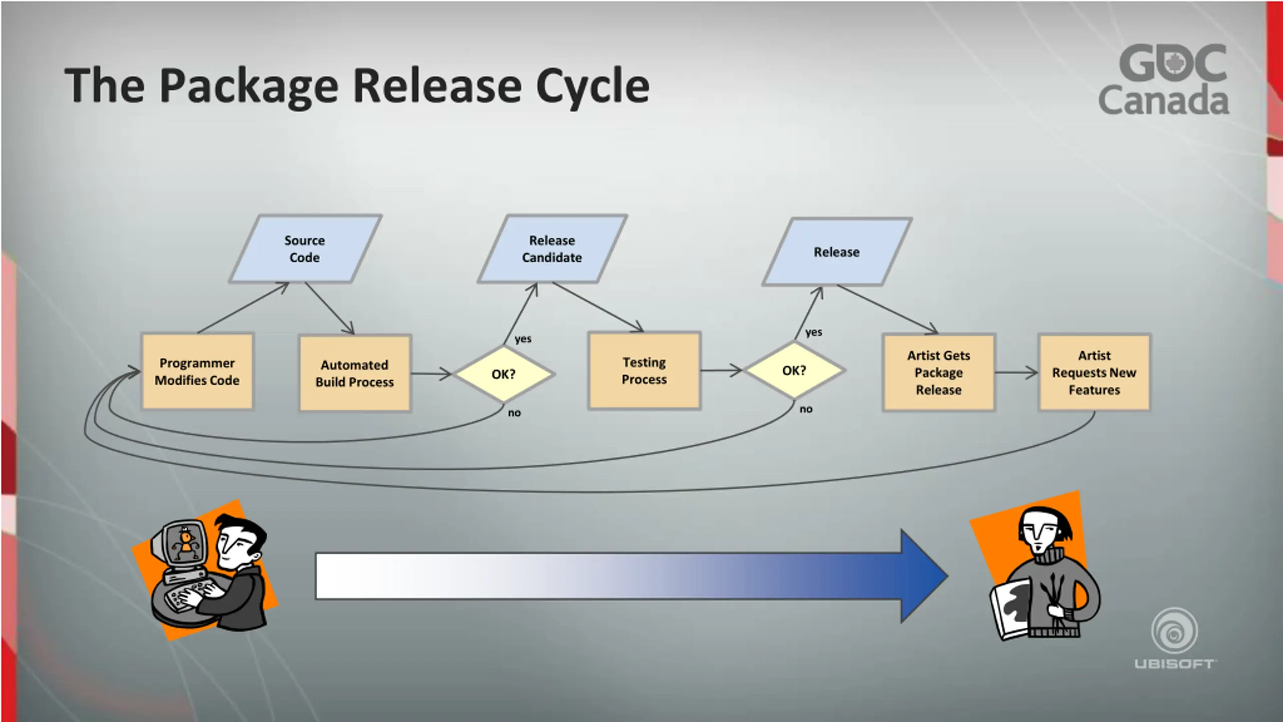The Package Release Cycle Source Code Release Candidate Release yes yes Artist Gets Package Release Artist Testing Process Programmer Modifies Code Automated Build Process OK? Requests New Features OK? no no