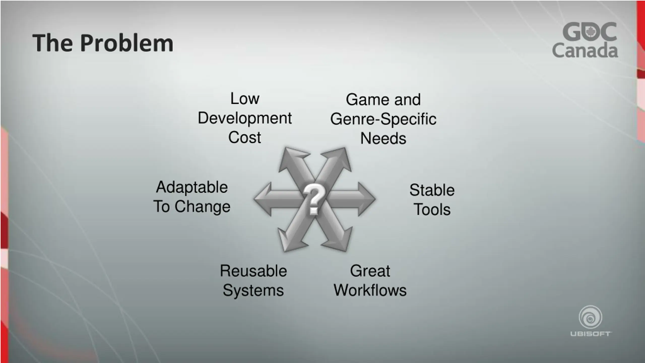 The Problem Low Game and Genre-Specific Needs Development Cost Adaptable To Change Stable Tools Reusable Systems Great Workflows