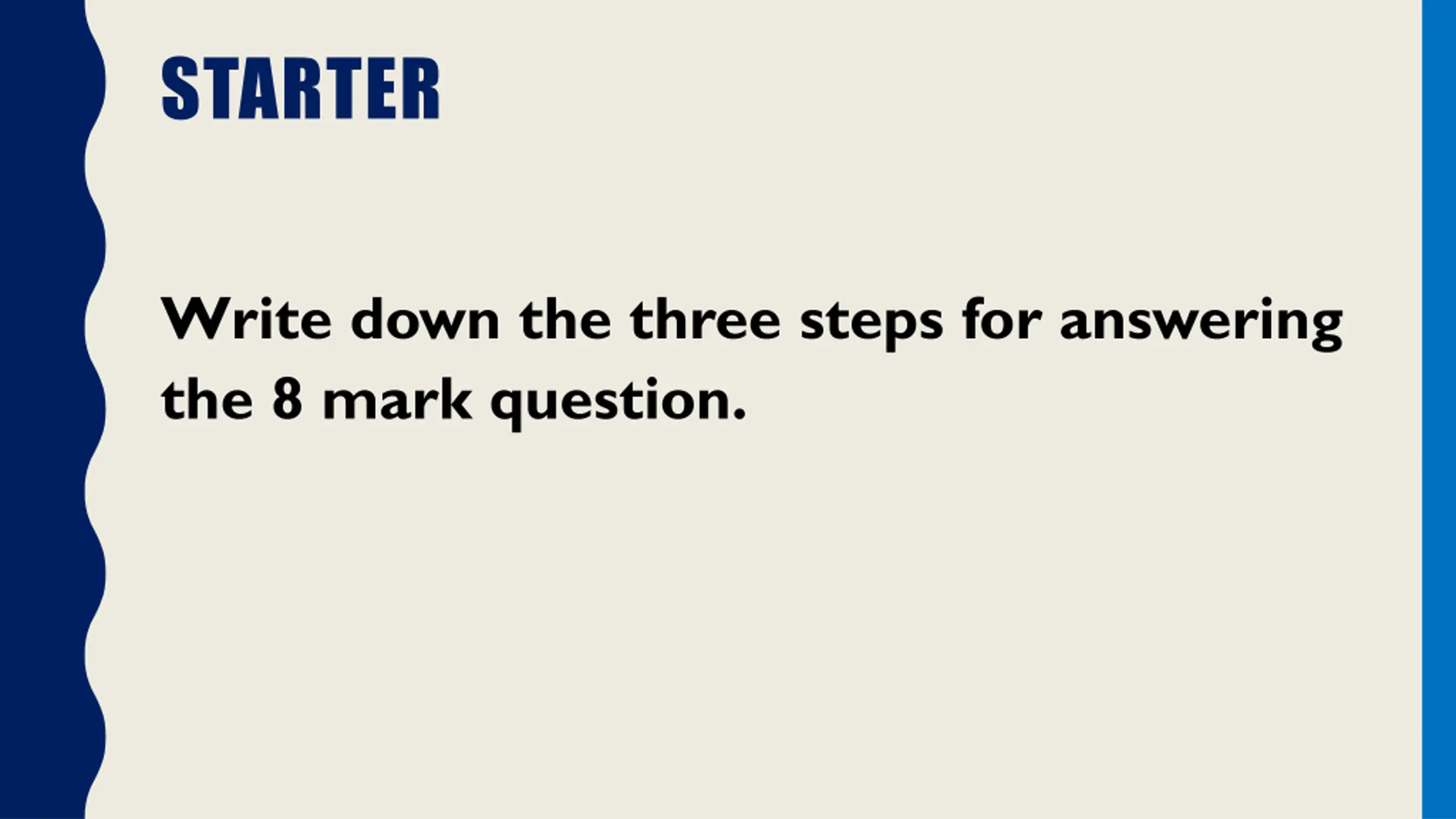 STARTER Write down the three steps for answering the 8 mark question.